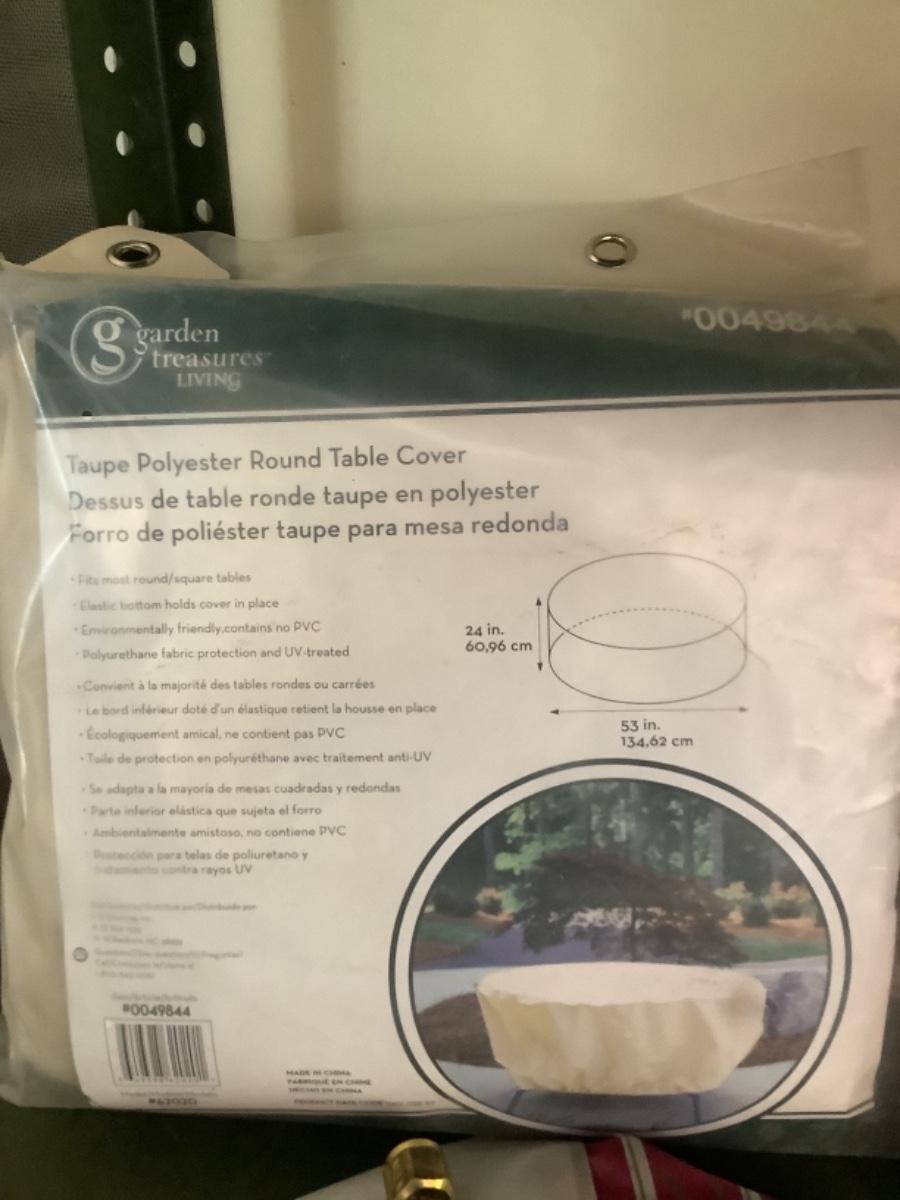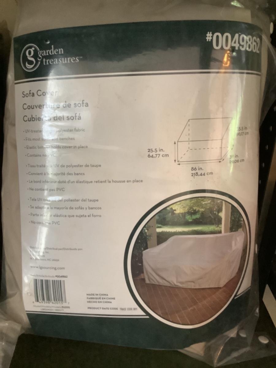 Table for 53” round , sofa 86” wide, kettle bbq, large bbq cover