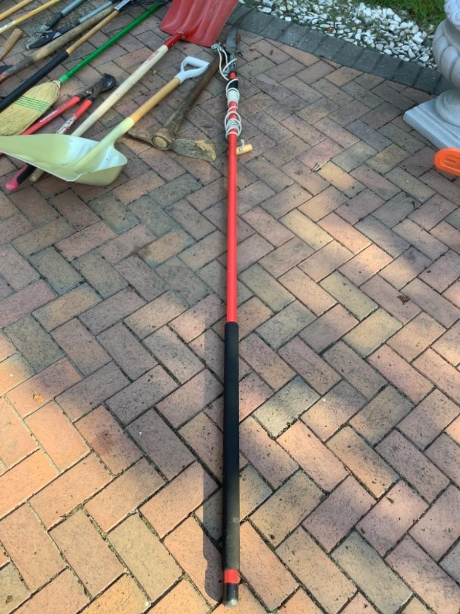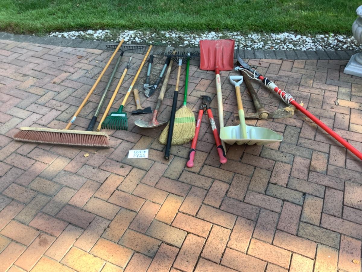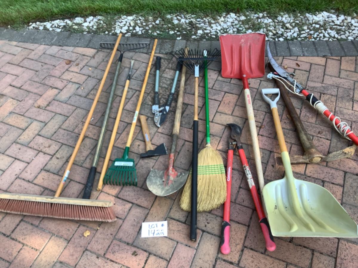 Shovels, rakes, broom , pic axe, lobbers, hatchet, pole cutter