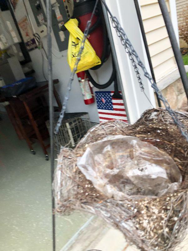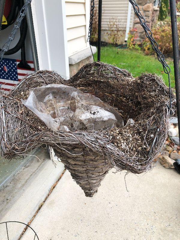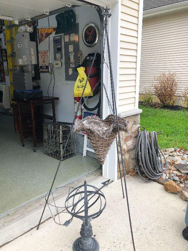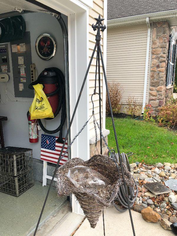Tripod Style hanging planter and garden decor. Please refer to photos for size and condition. Have fun and happy bidding.