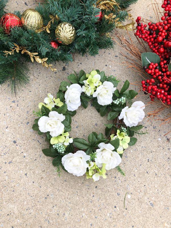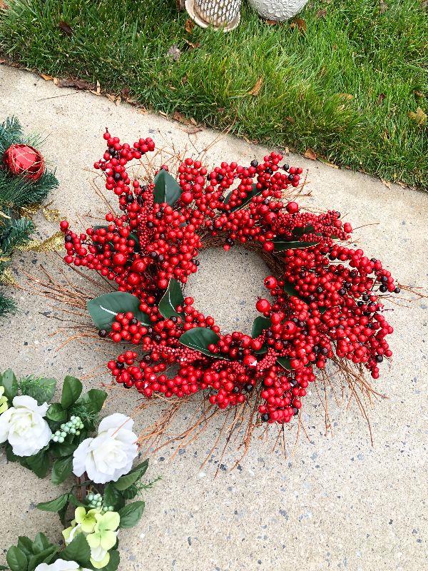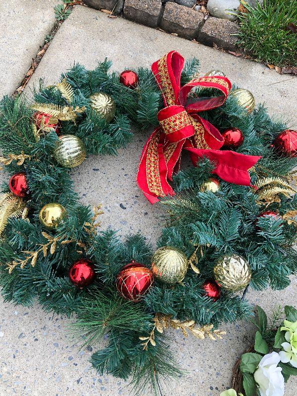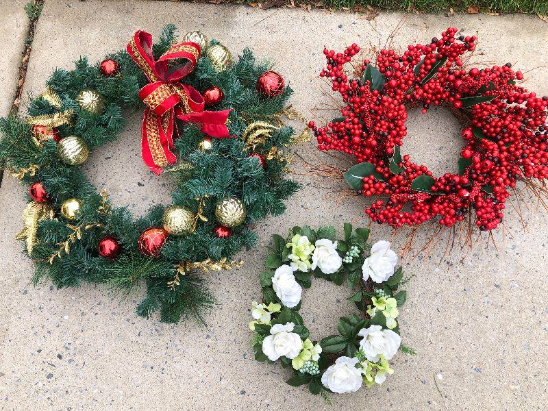 Lot of Three Wreaths. Please refer to photos for size and condition. Have fun and happy bidding.