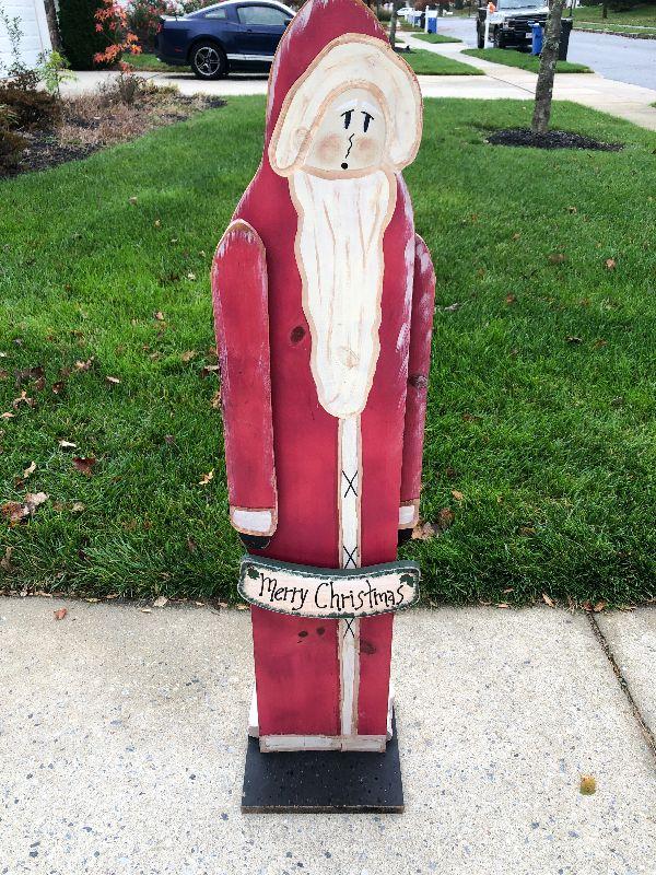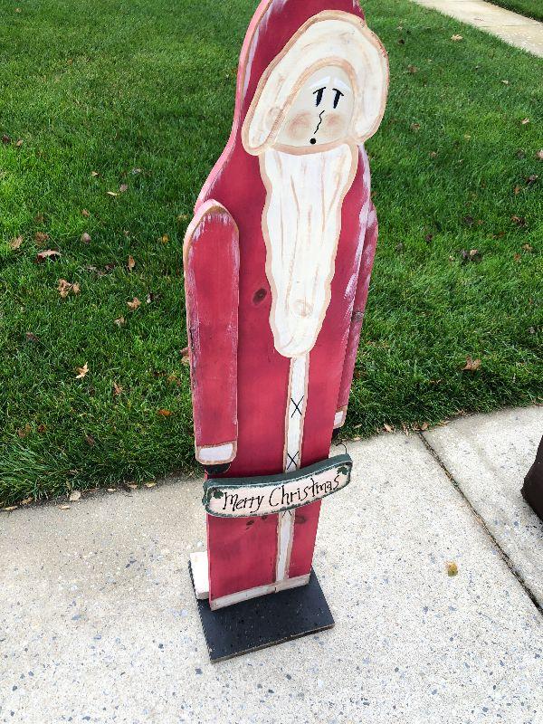 Wooden Santa Decor. Please refer to photos for size and condition. Have fun and happy bidding.