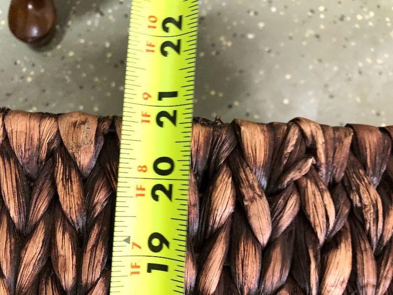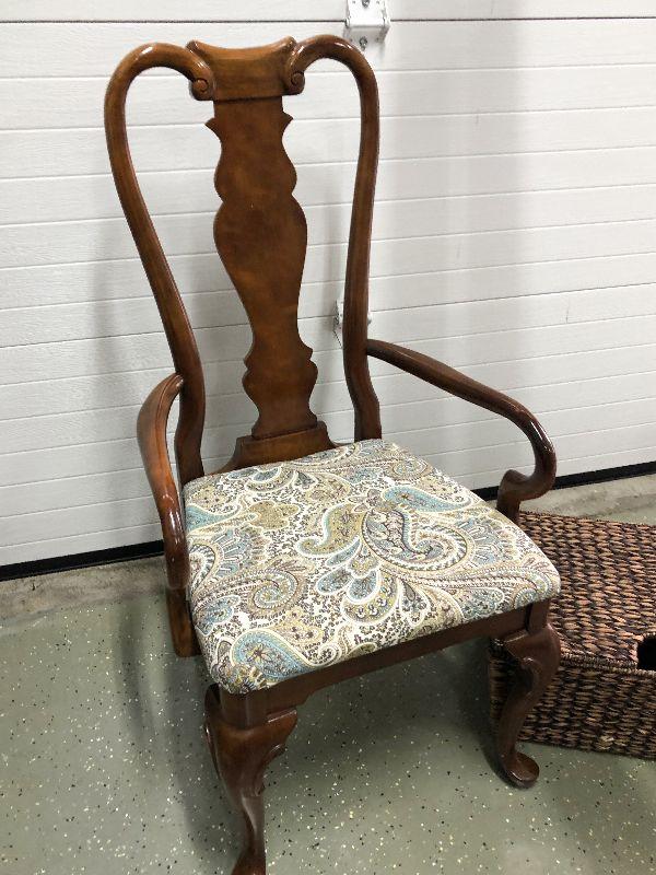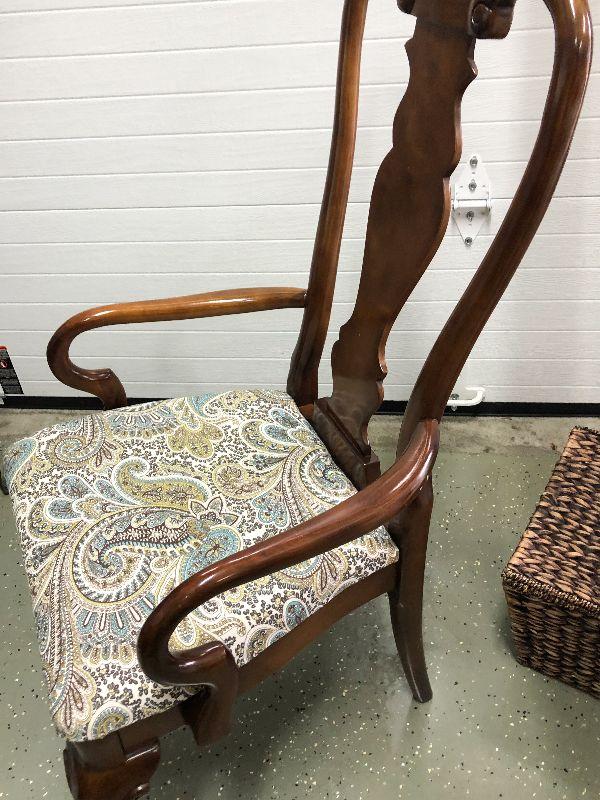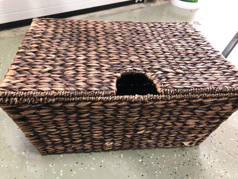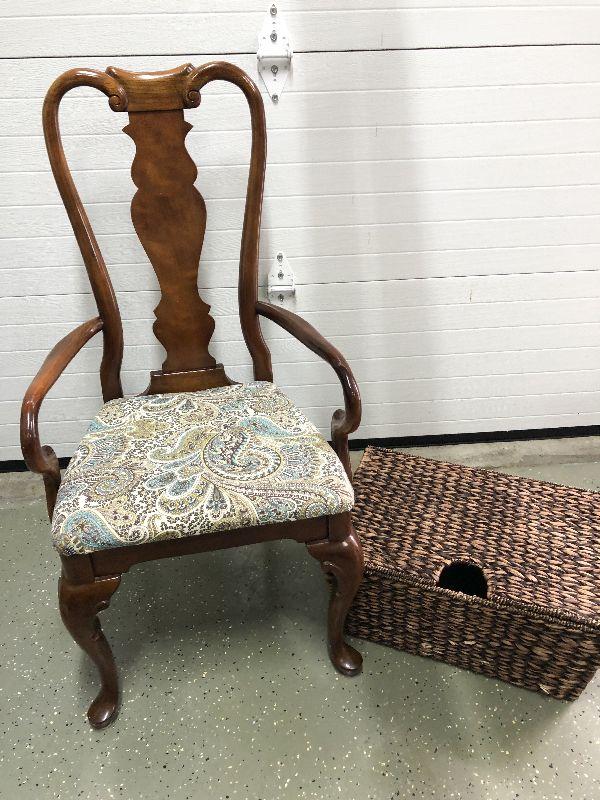 Chair is padded with paisley print. Wicker Storage basket with handles 21x14. Please refer to photos for size and condition. Have fun and happy bidding.