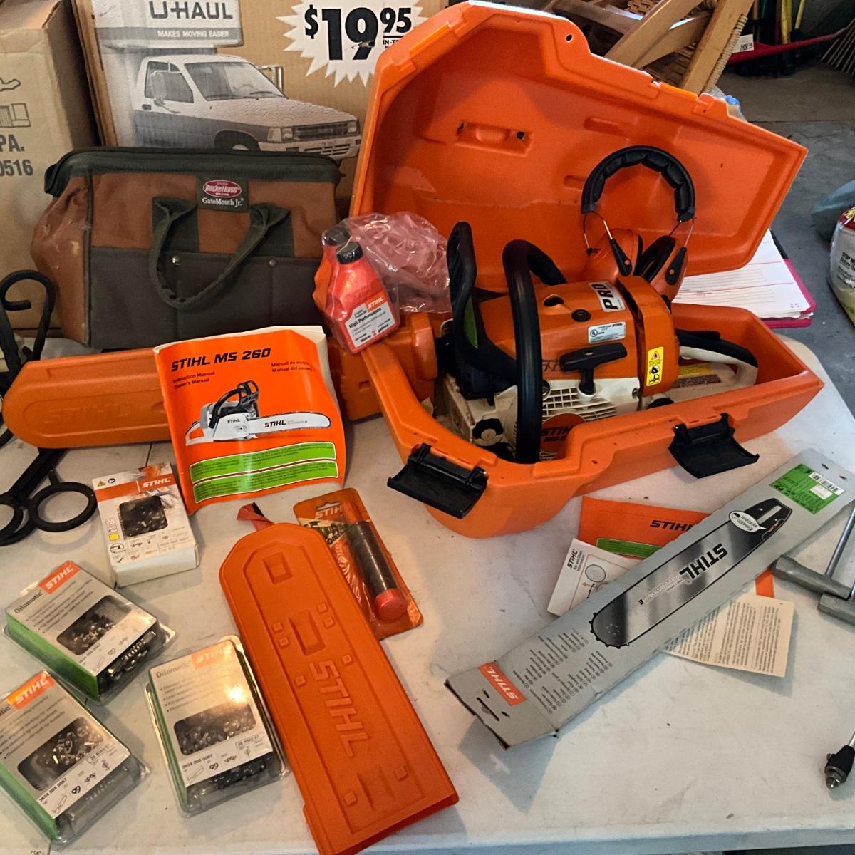 MS280 comes with all attachments and additional NEW Chains with canvas bag and headphones