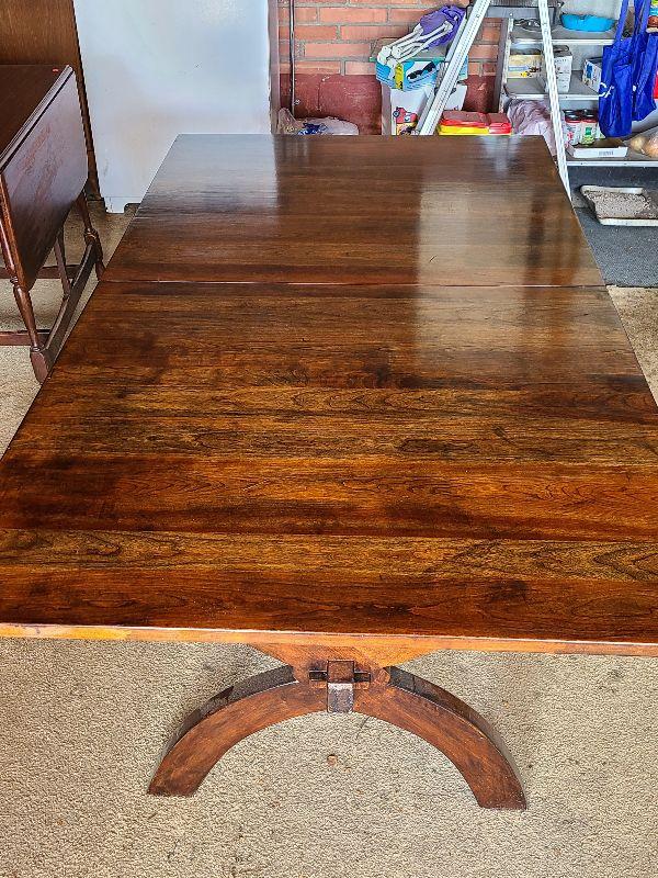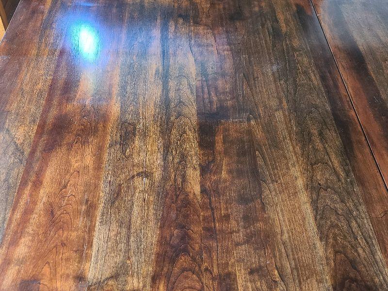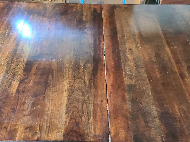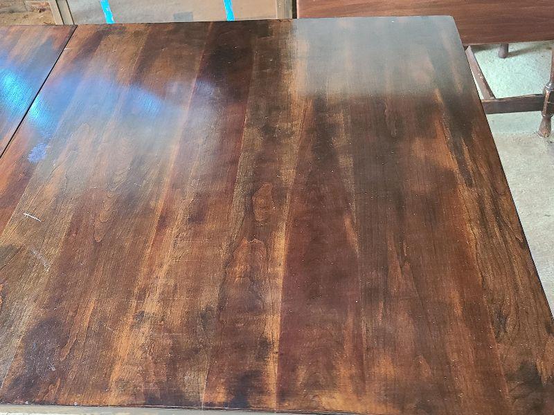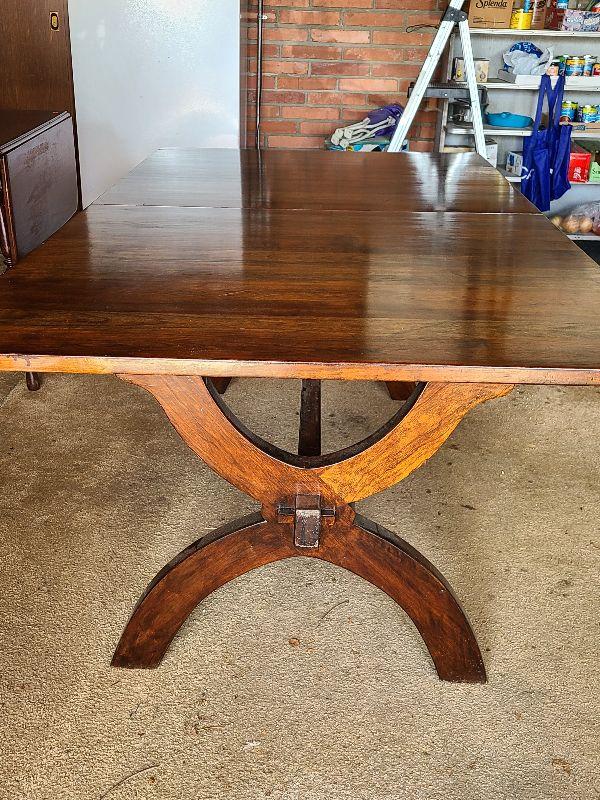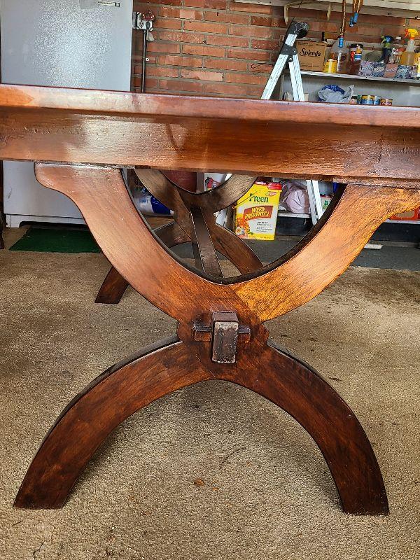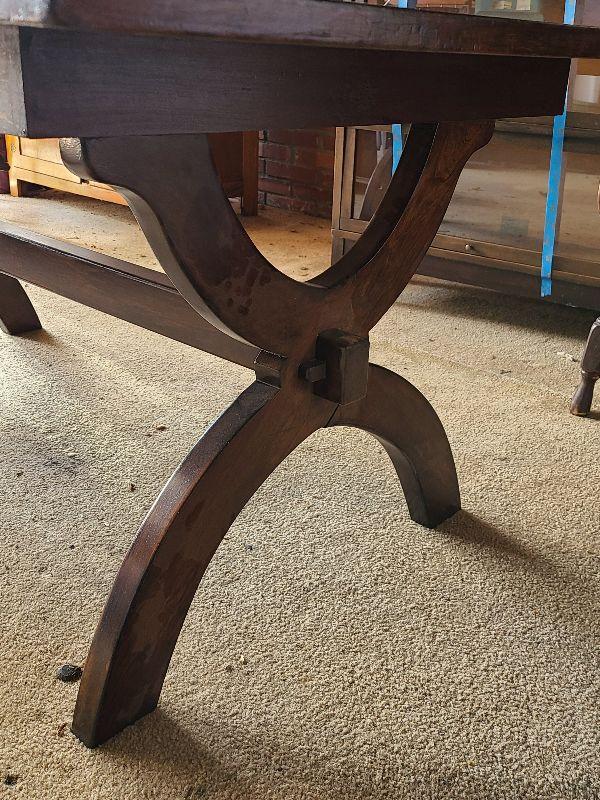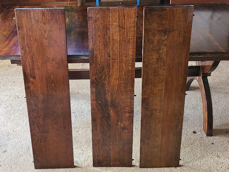 Trestle table from Walter of Wabash Harden Cherry Furniture. Has 3 leaves. The table is not currently attached to the bottom, easy to move.