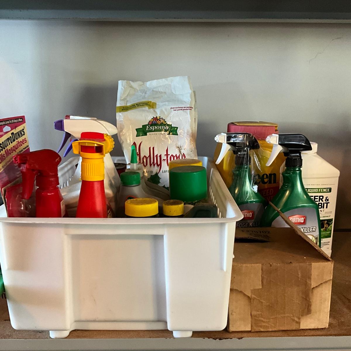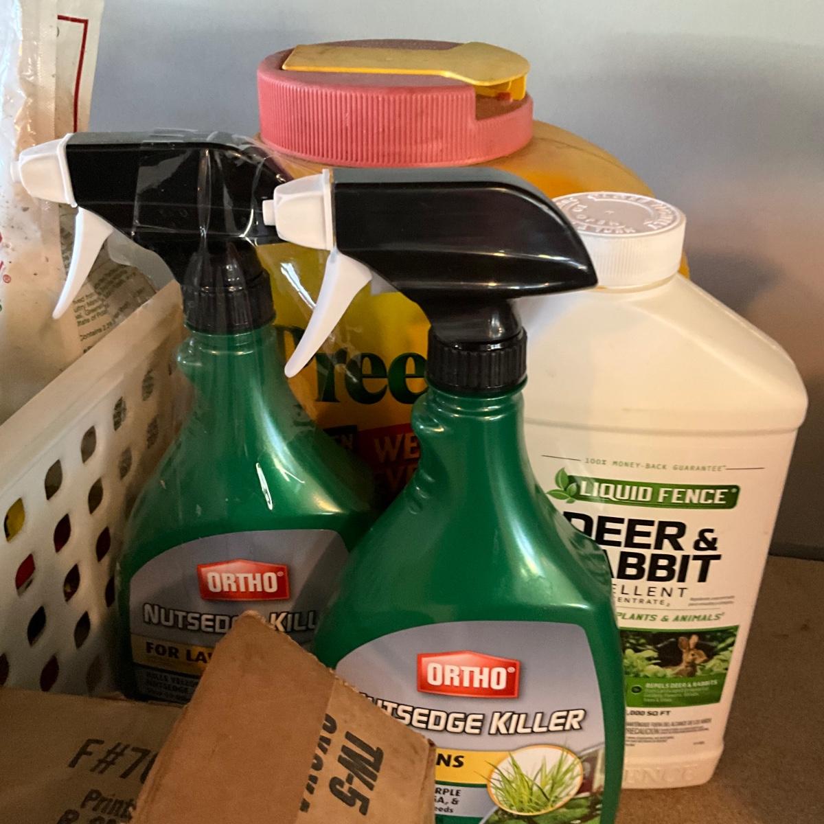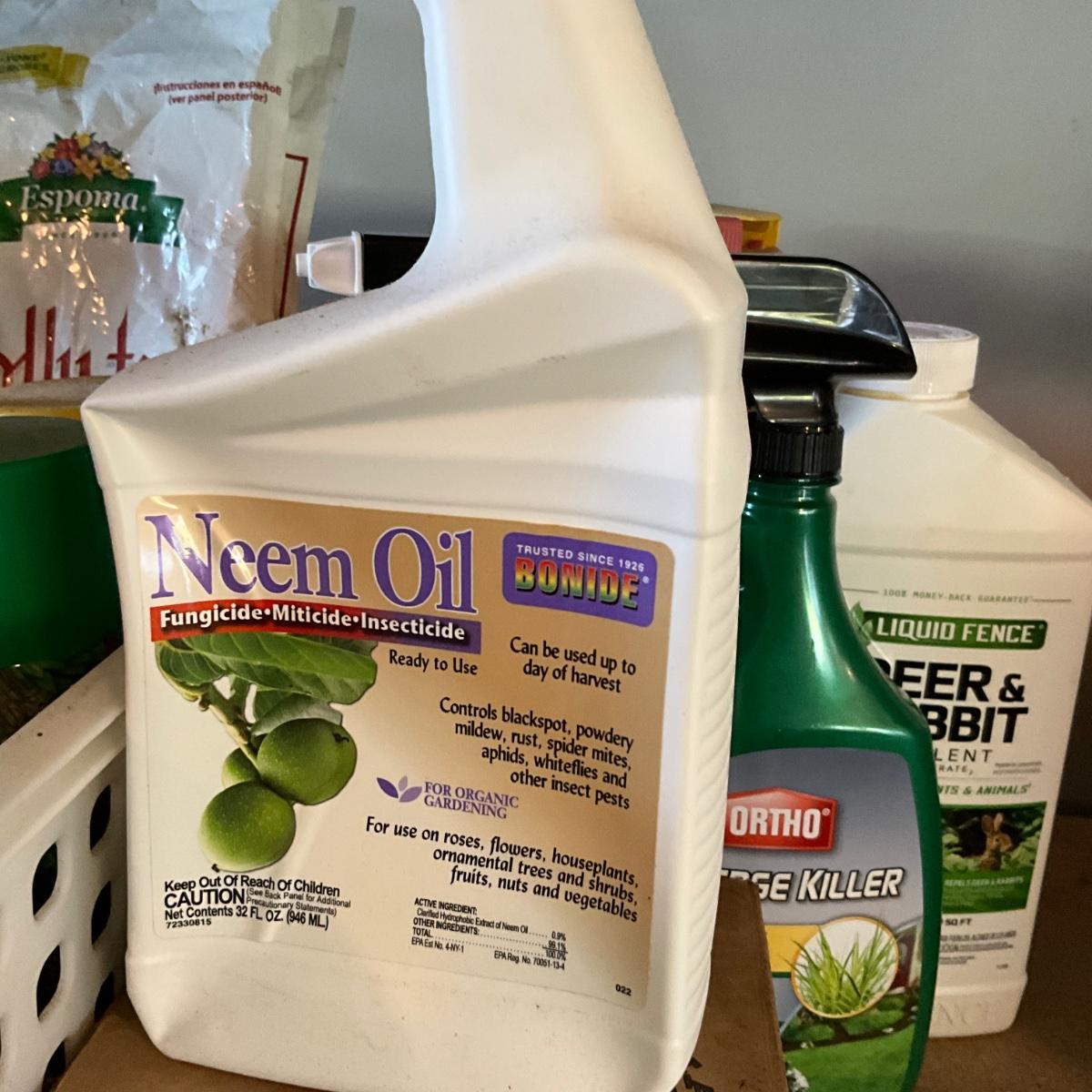 Holly tone , stump remover, malathion, neem oil, deer and rabbit deterrent