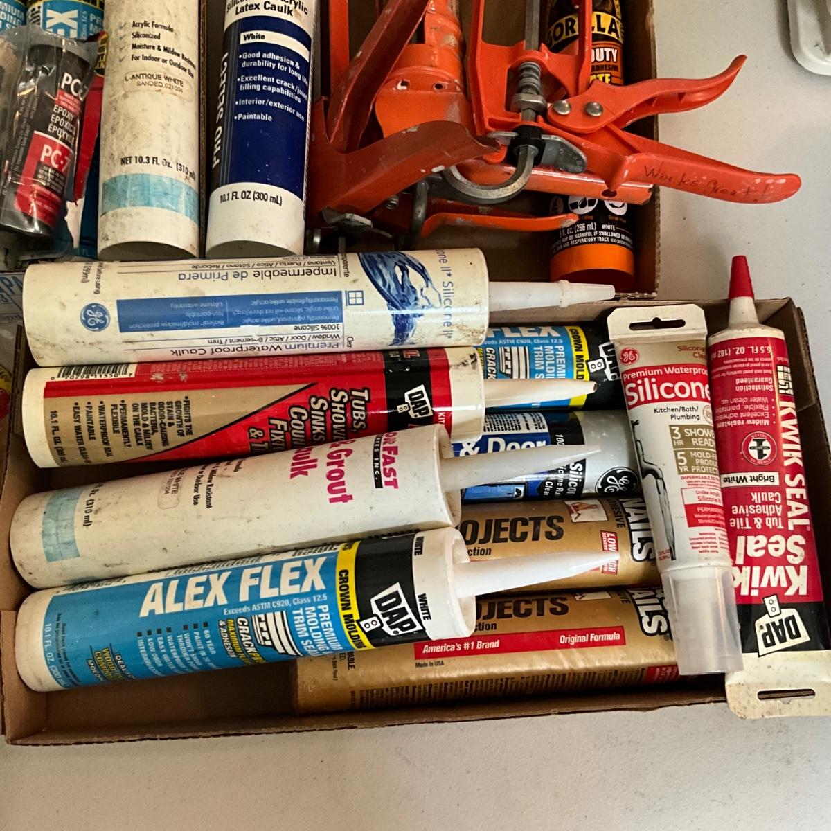 G1965 Lot of Caulking Guns and Caulk/Glues