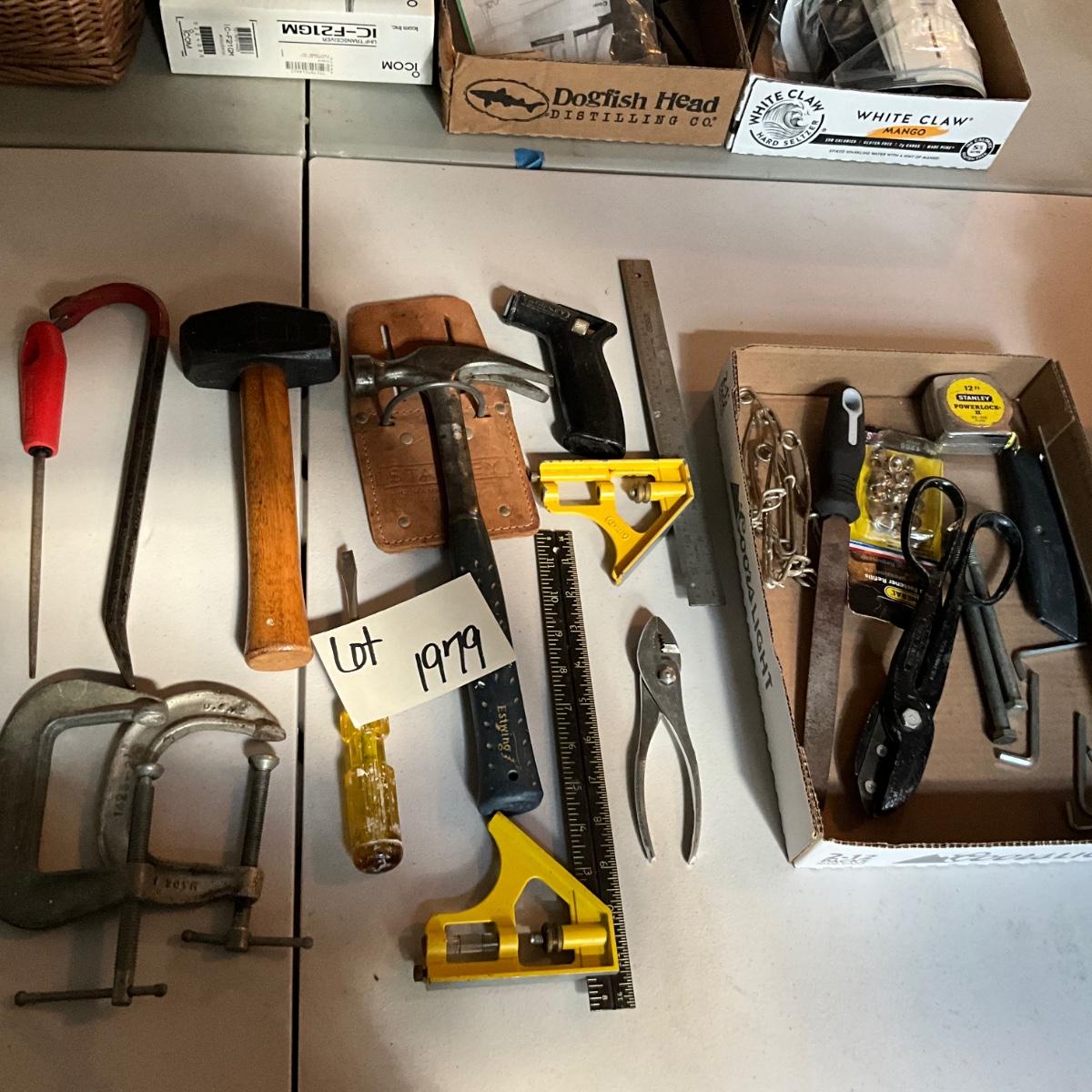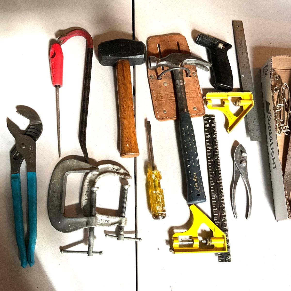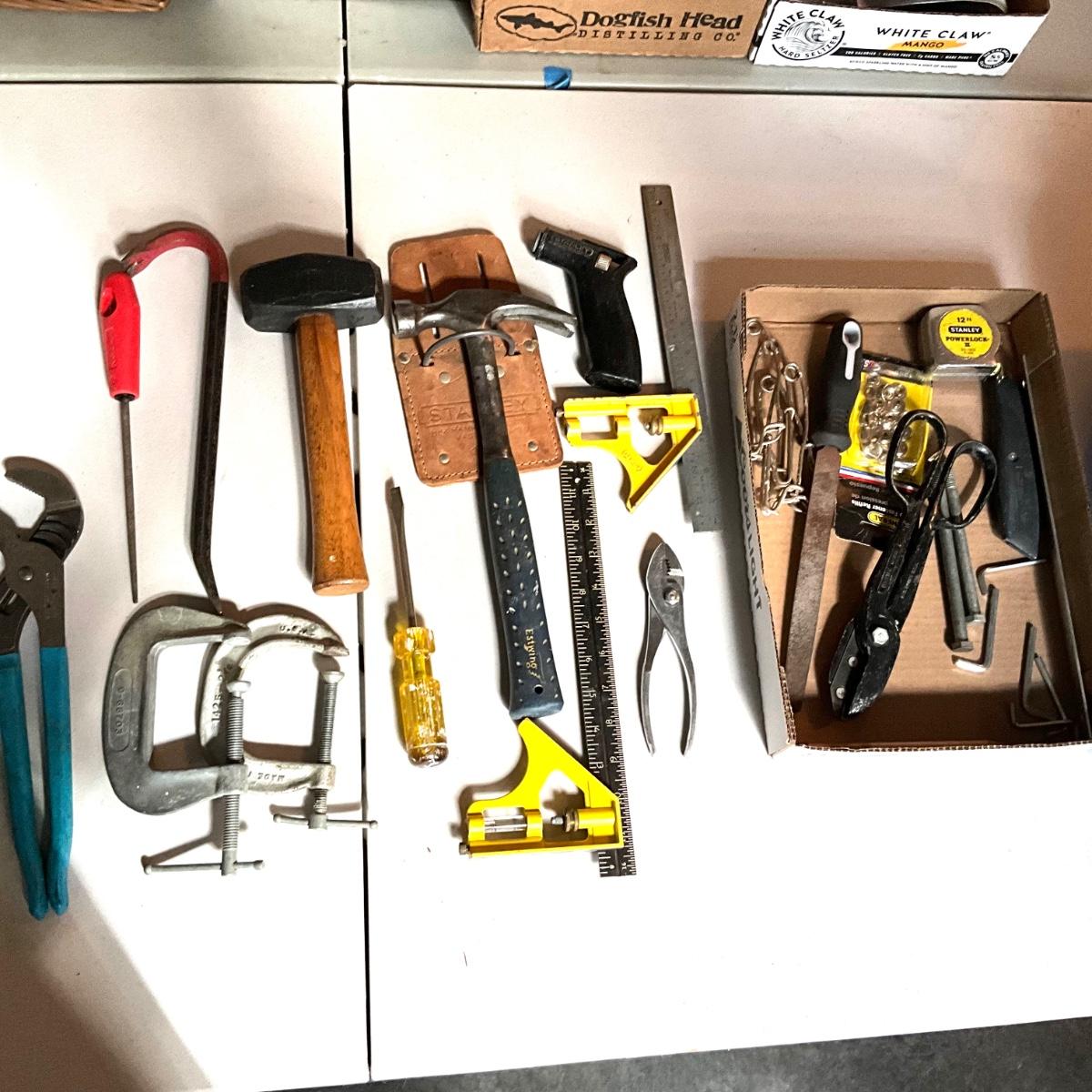G1979 Lot of Various Tools , Hammer, C Clamps, and more