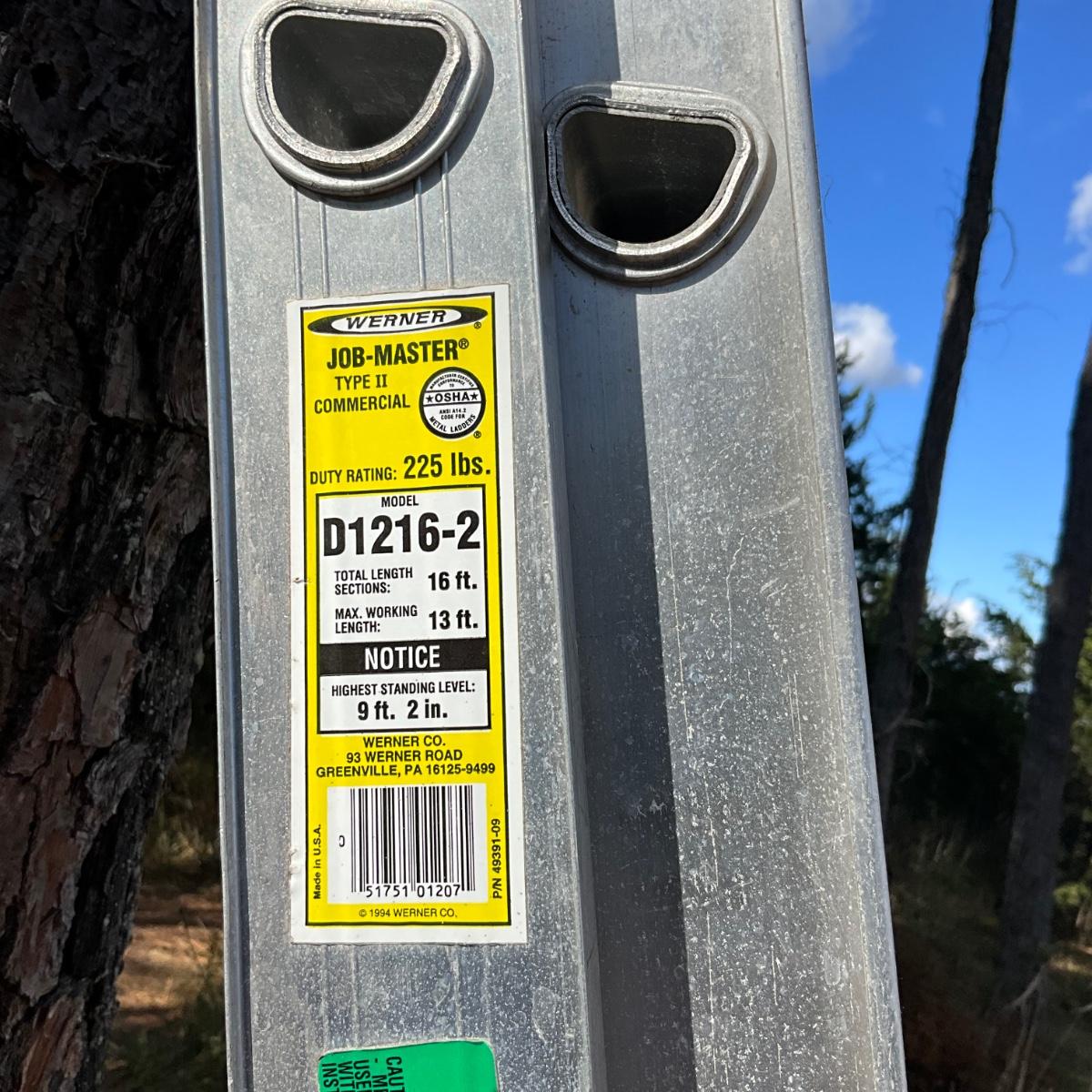 G1989 Large 16' Werner Aluminum Extension Ladder