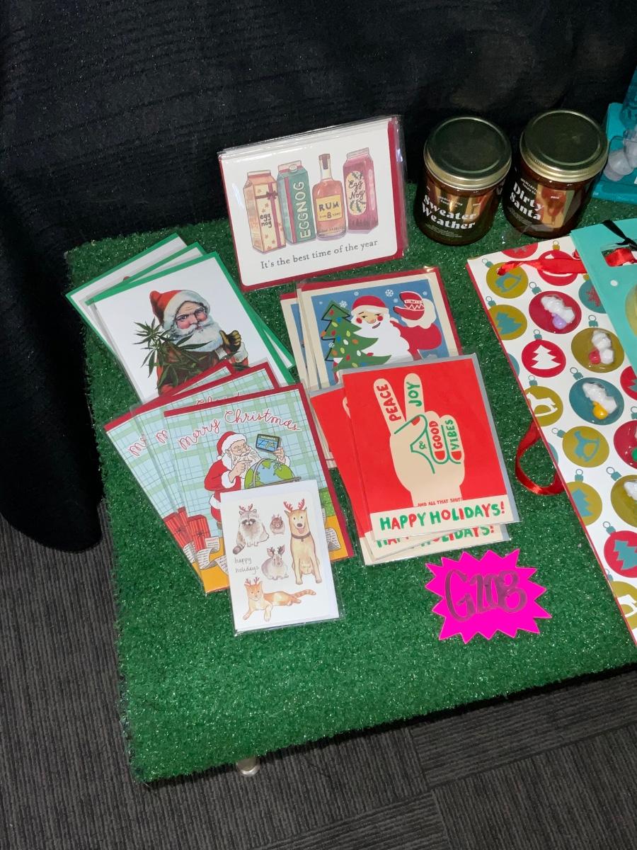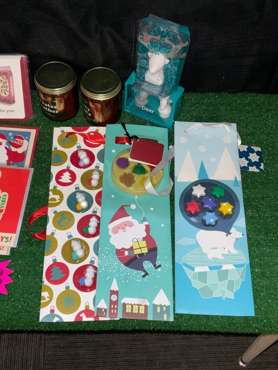 G208-Cards, candles, wine gift bags with glass markers attached etc