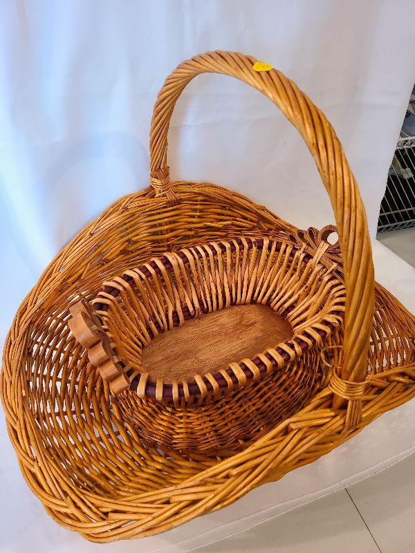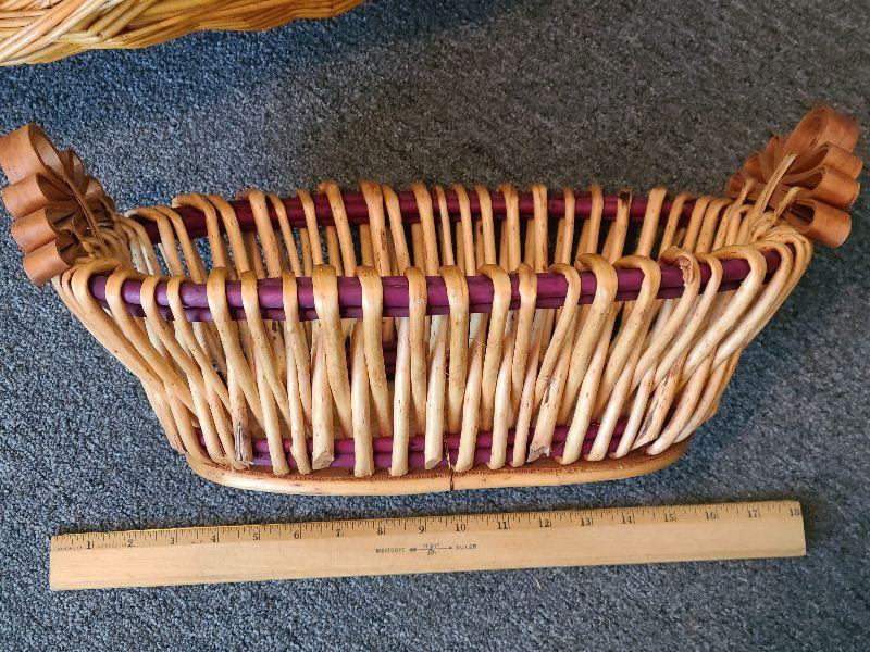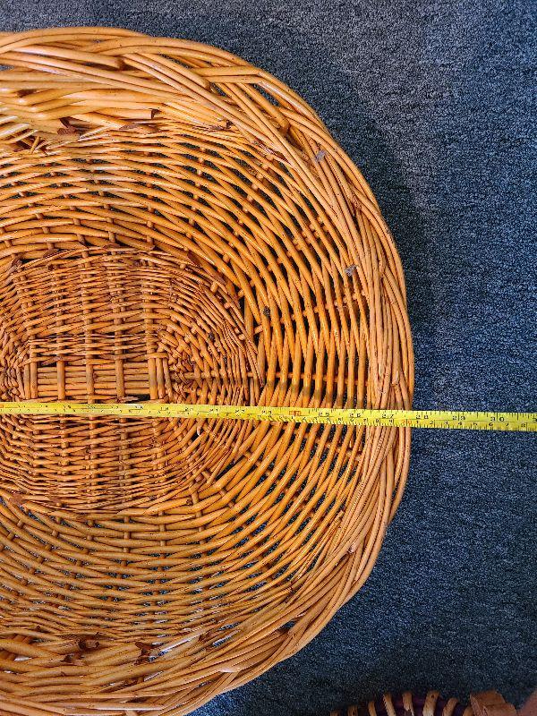 This lot is for two very nice, very sturdy baskets. Please see meaurements, because one is very large!