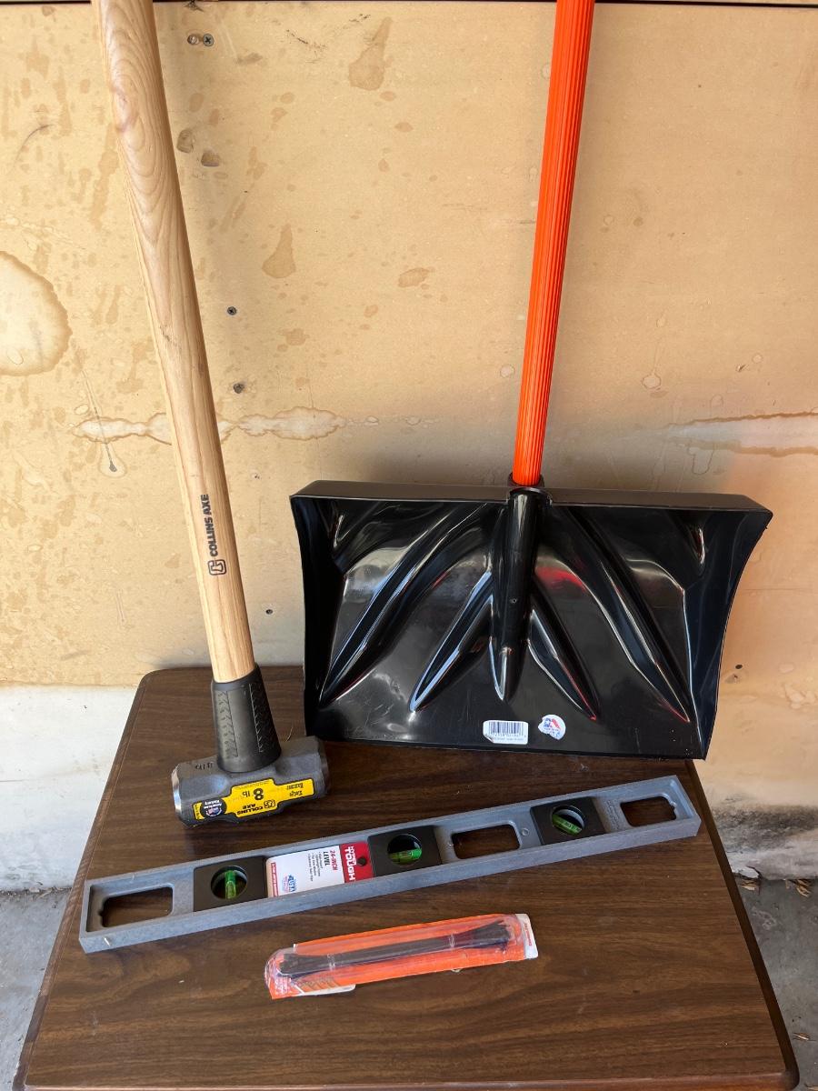 G21- 8 lb sledge, shovel & level
