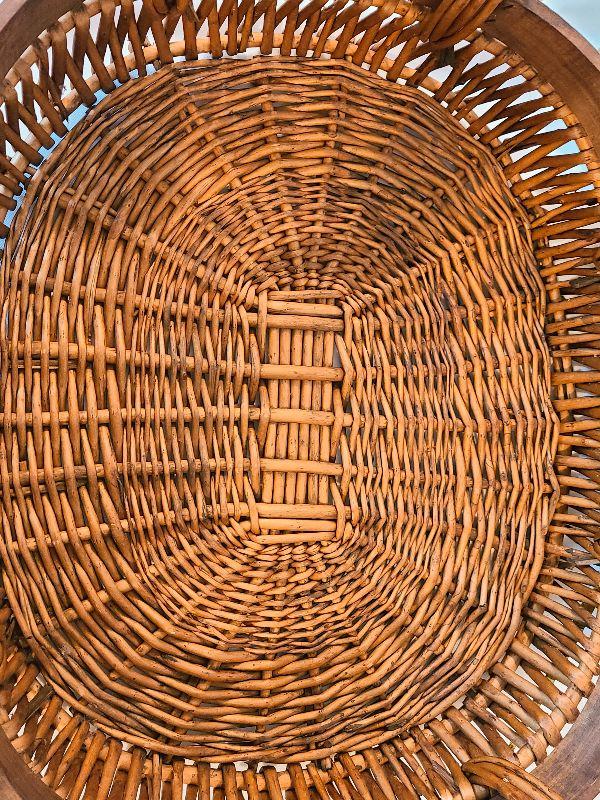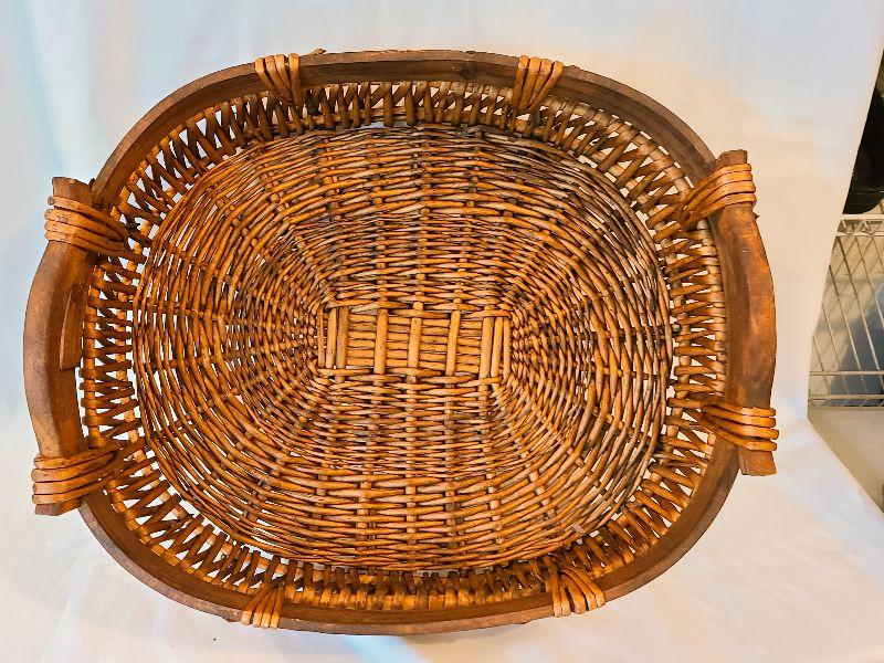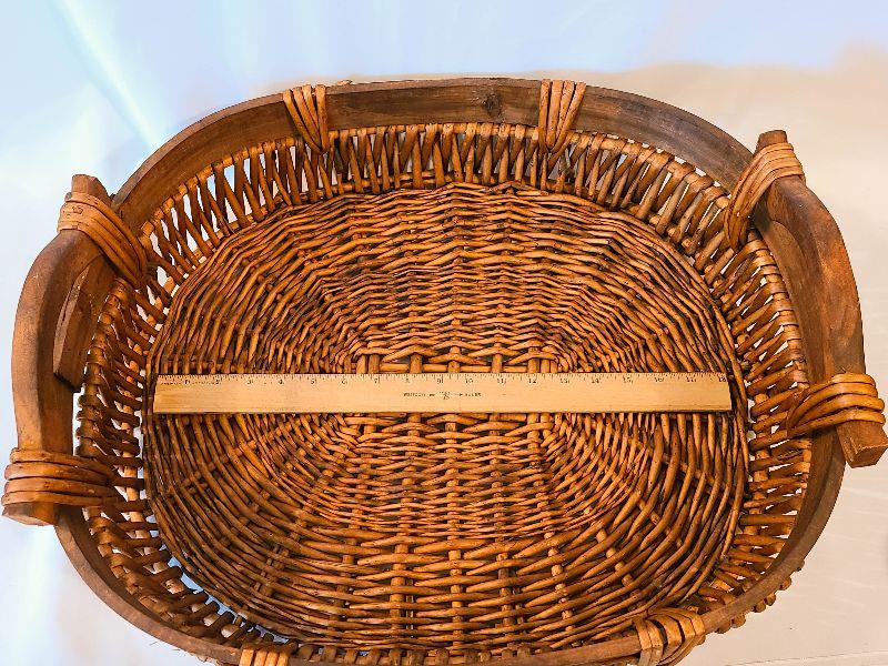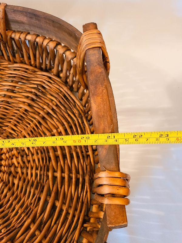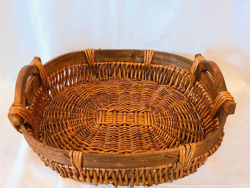 This is a very nice sturdy basket for serving or decor, perfect to take everything out to the patio, or to use as centerpiece. 21 inches long! Please see pics for sizing and condition
