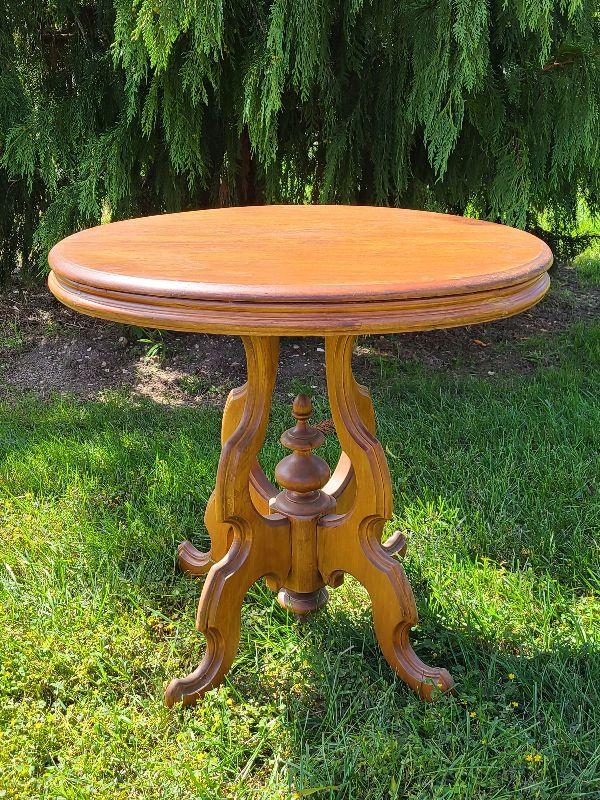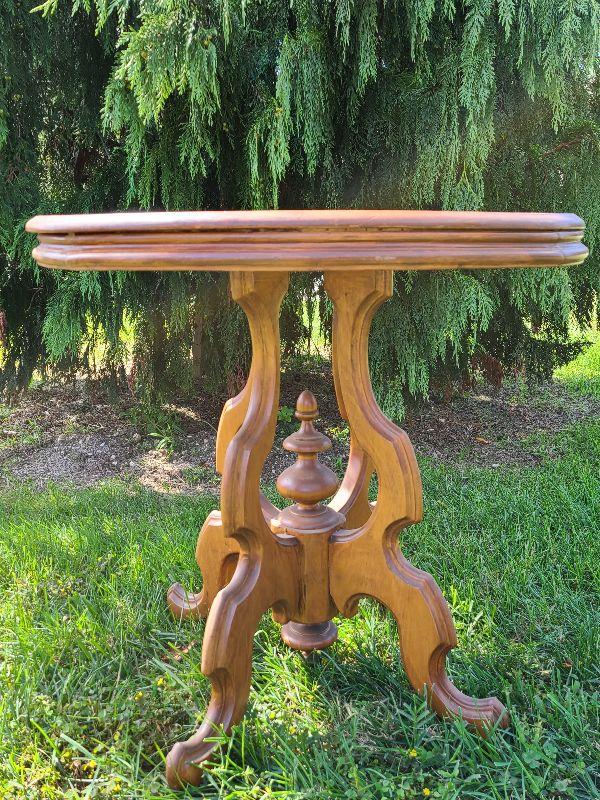 Refinished antique oval topped table.