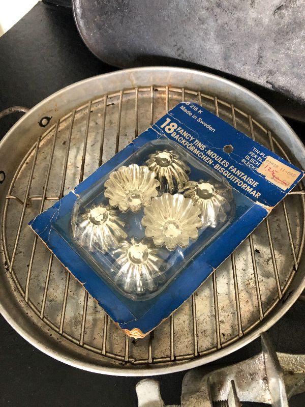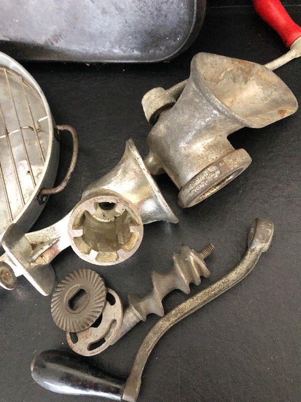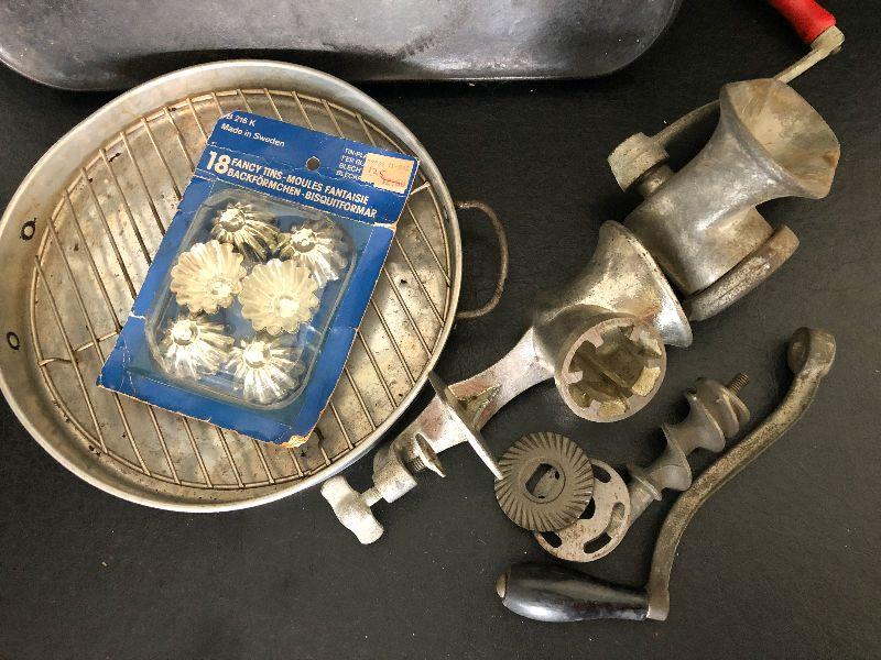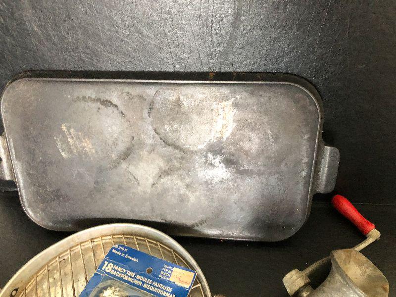 Griswold Cast Iron Griddle,Fancy Tin Molds & Grinder