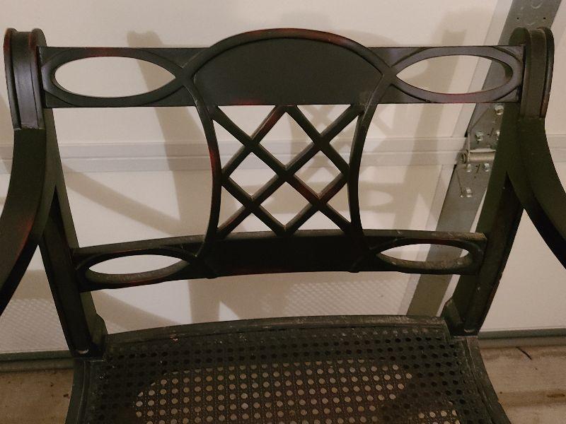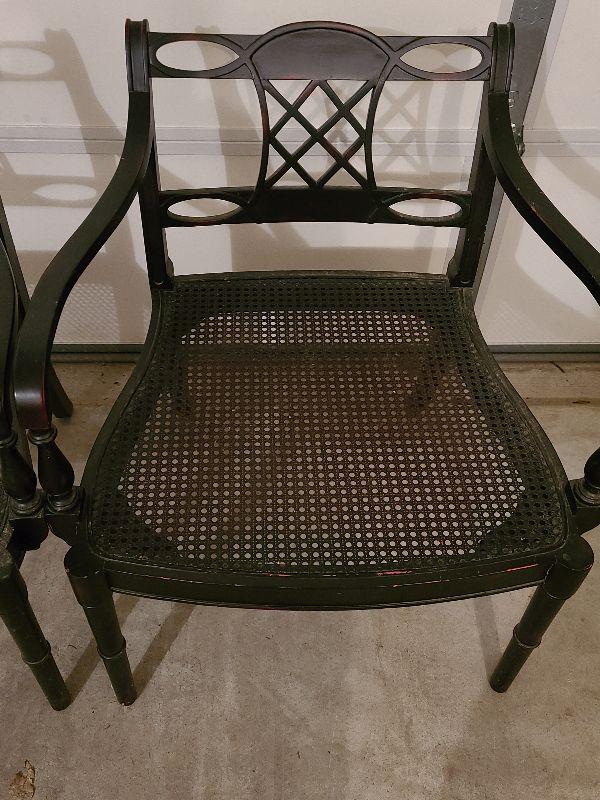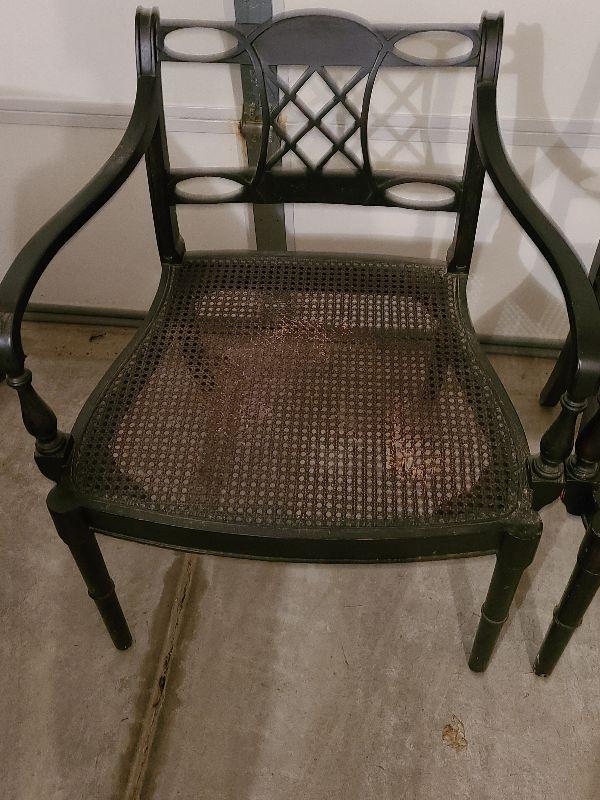 Pair of Vintage Cained Chairs. These are very nice, they do show some wear but are sturdy. Would be perfect with a cushion. Please see pictures for contents of the lot, condition of the lot, and any measurements of the item. Thank you for looking and happy bidding!
