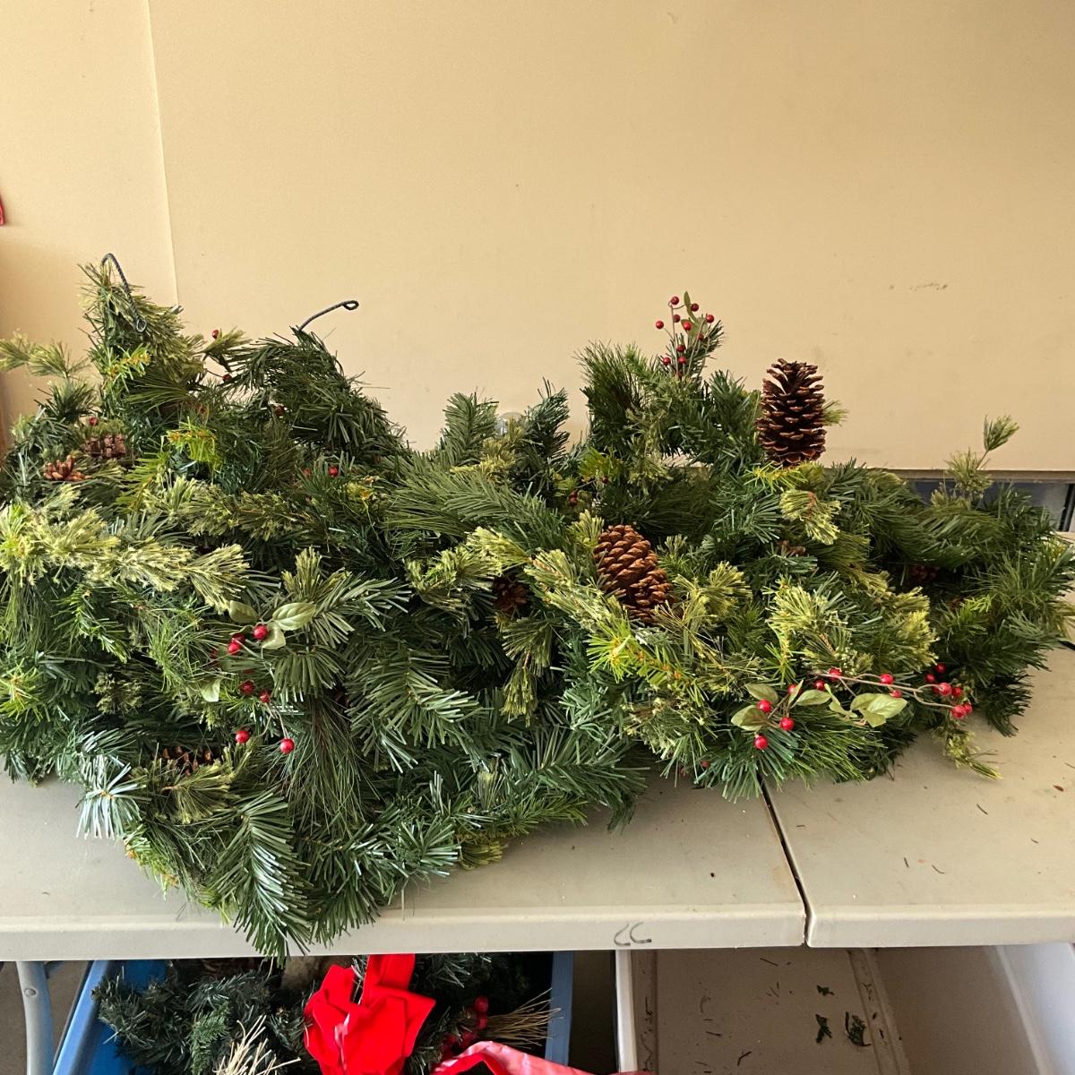 G279 Large Tub of Faux Green Christmas Garland and Swags