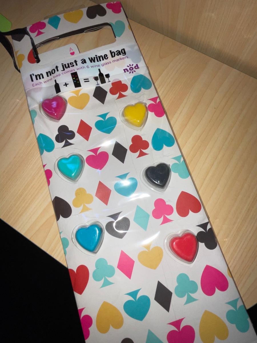 G286-Large lot of wine gift bags with attached drink markers plus bin