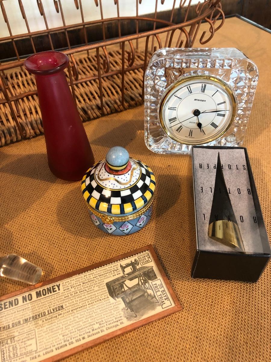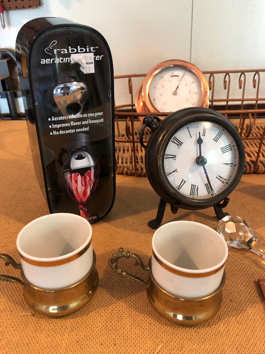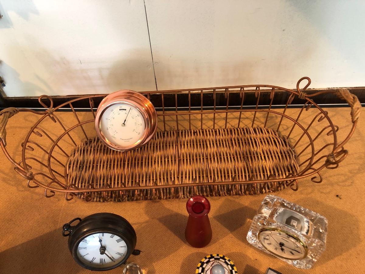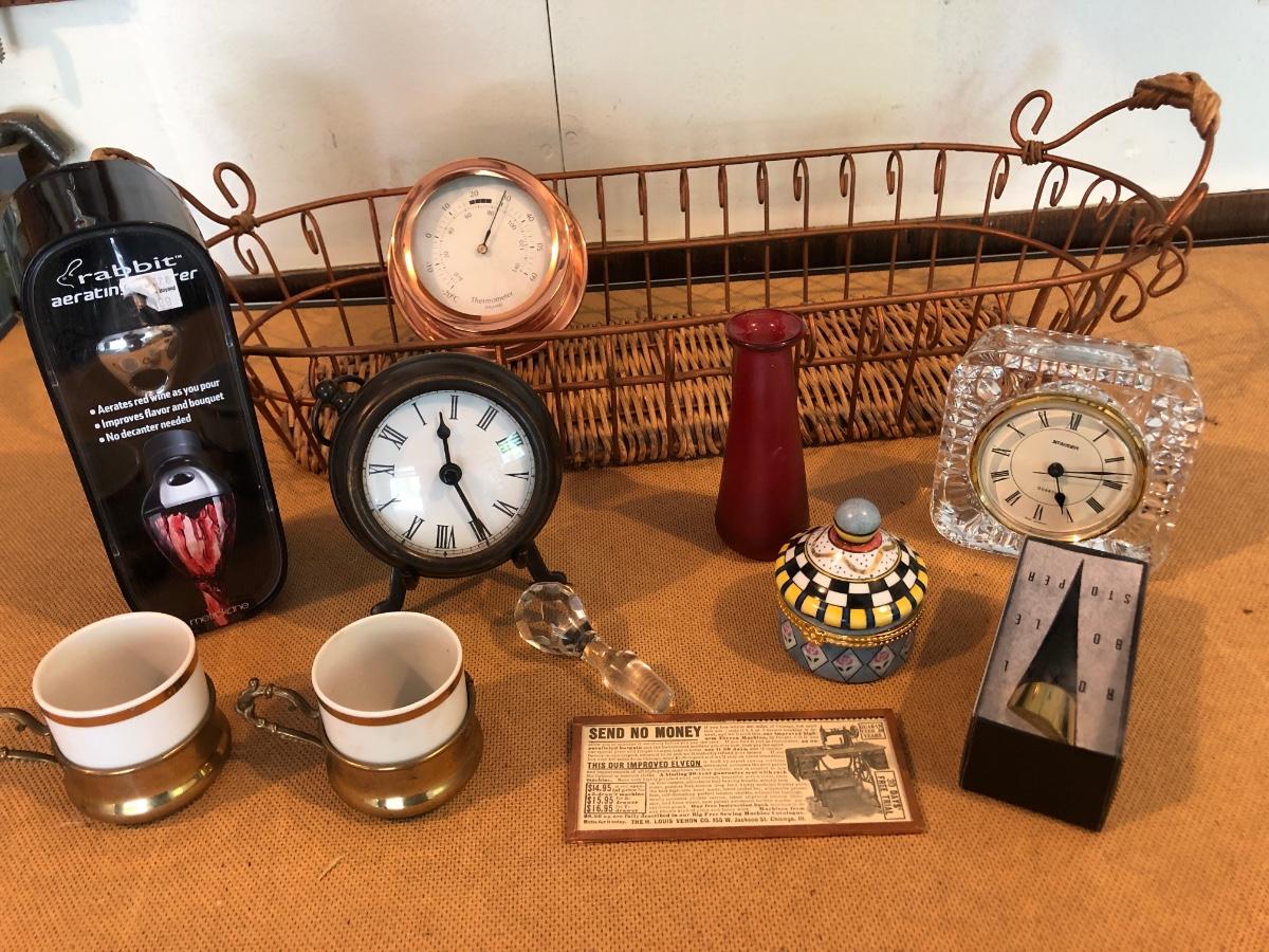 G29- Assortment of basket, wine access, clocks, cups, trinket boxes