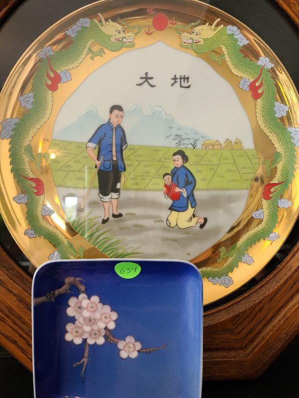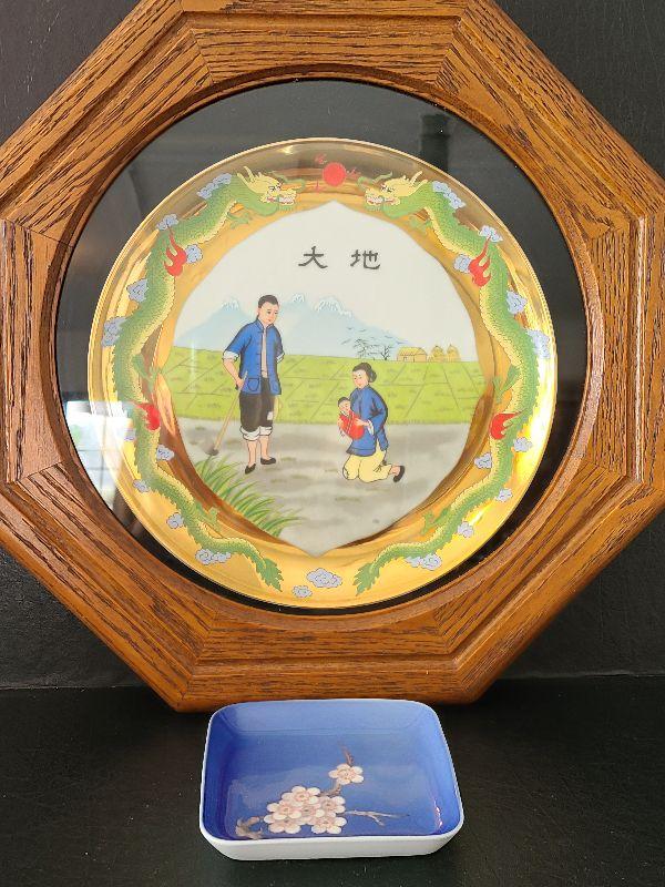 B & G porcelain trinket dish, and a framed, collectable plate depicting The Good Earth