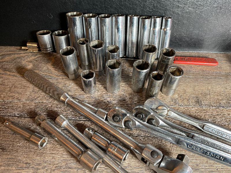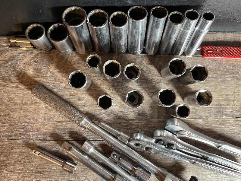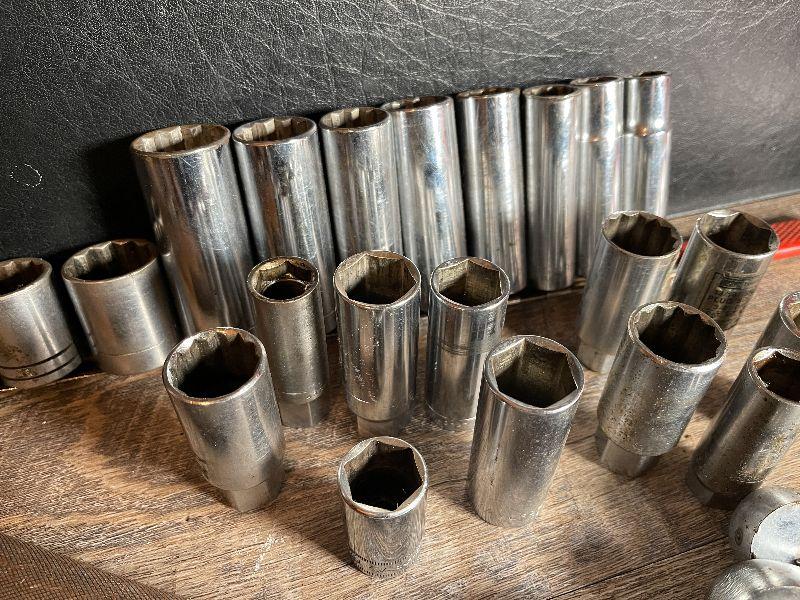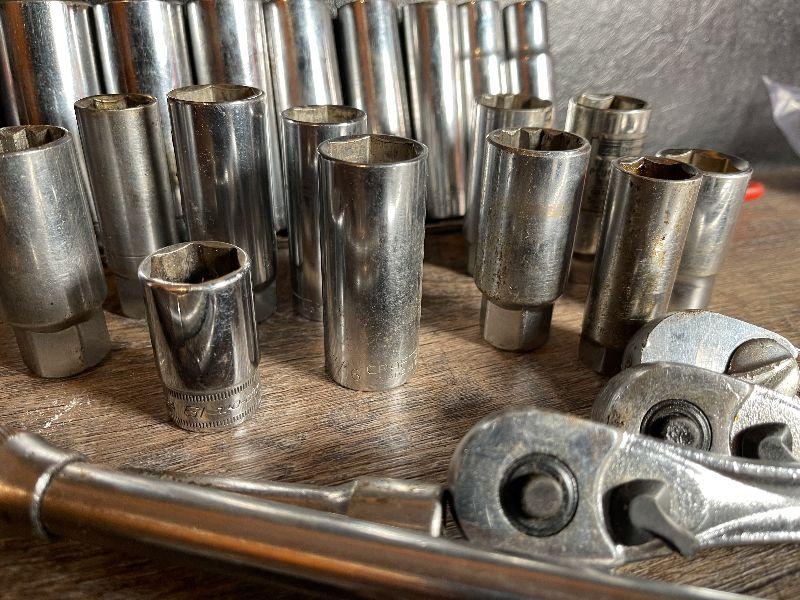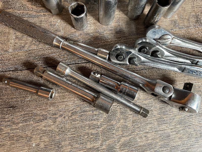 G34: Set of Large American Sockets, Ratchets, and Extenders
