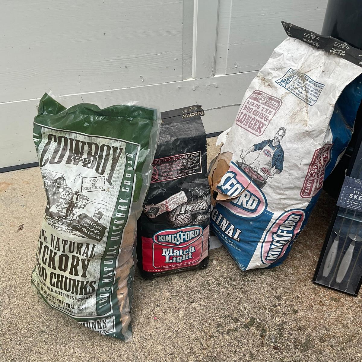 William Sanoma Skewers, hickory wood chunks, charcoal lighter fluid