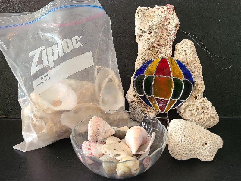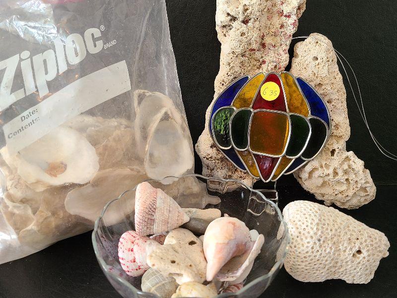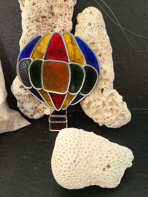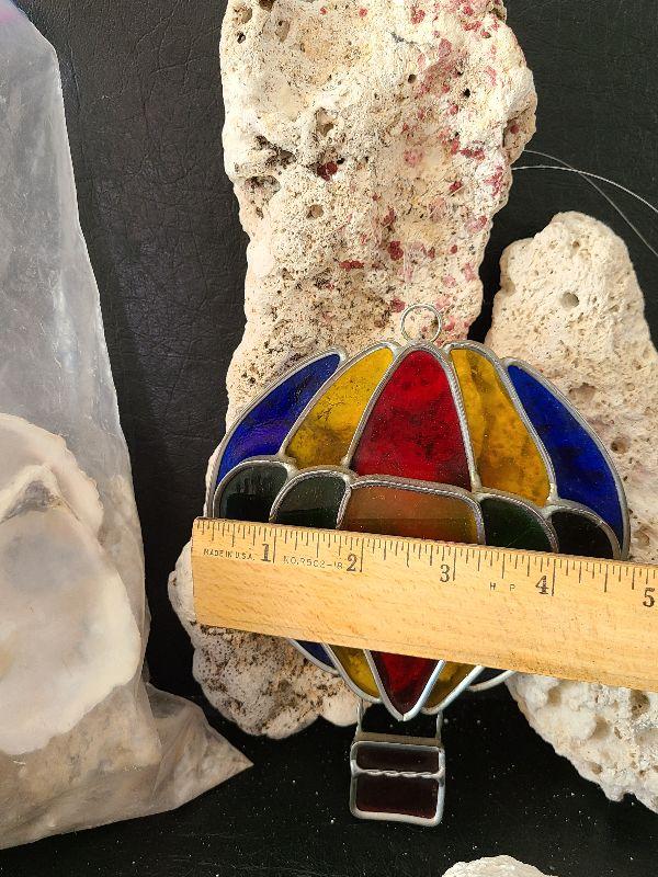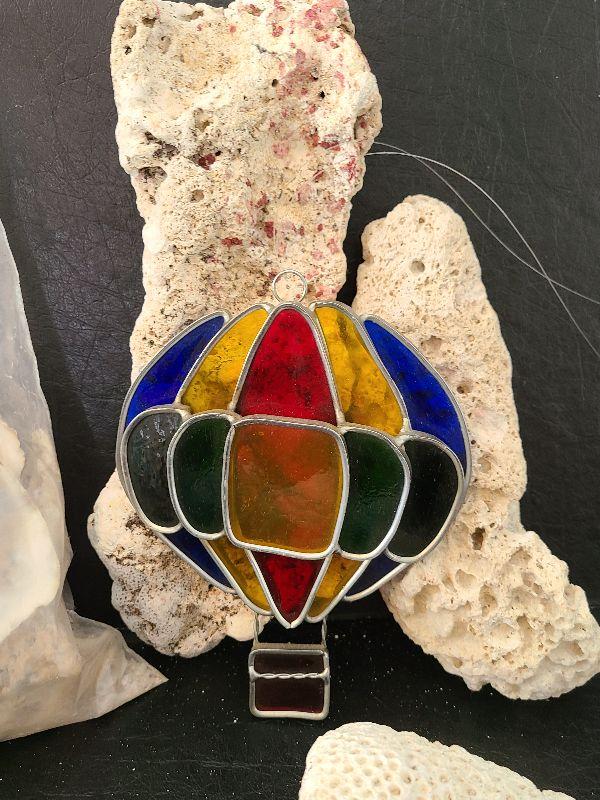 Several pieces of sea coral and a stained glass hot air balloon. Please see all pictures for exact contents of the lot, condition of the items, and if measurements if taken. Thank you for looking and have fun bidding.