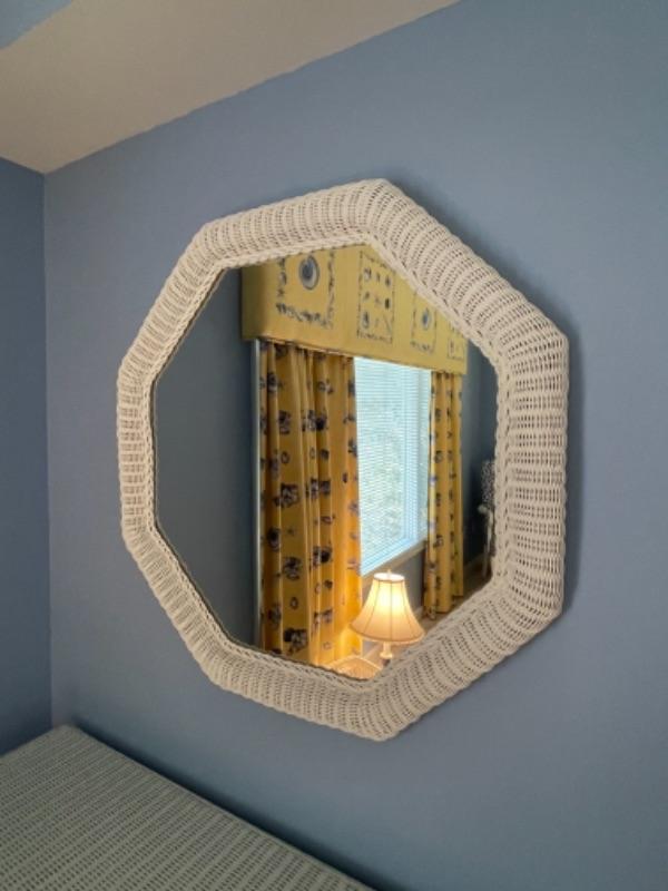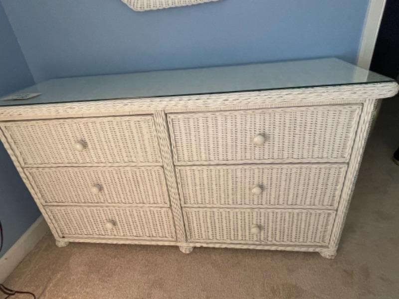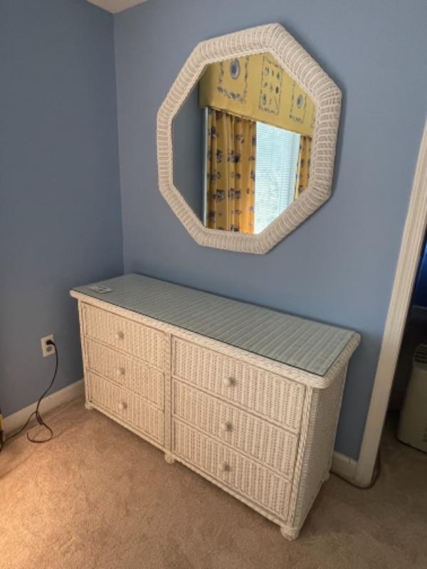 G375 White Wicker Glasstop 6 Drawer Dresser with Mirror