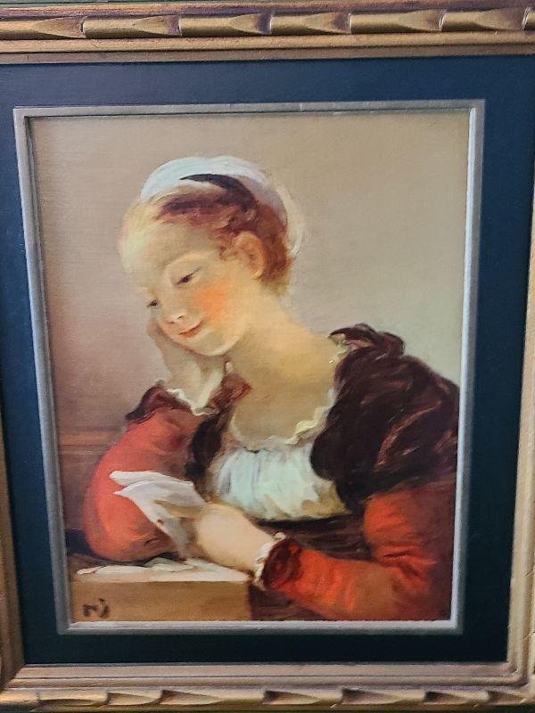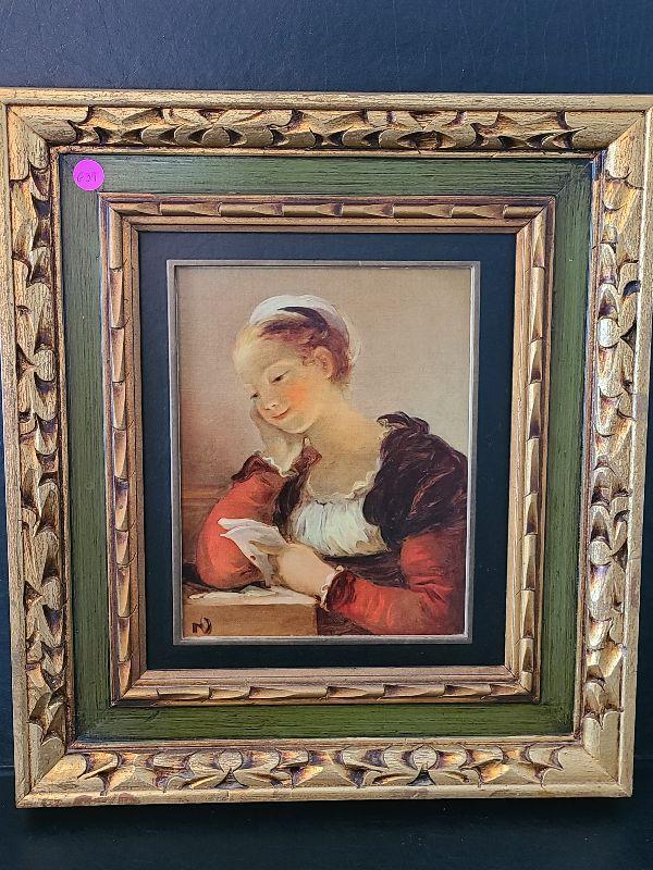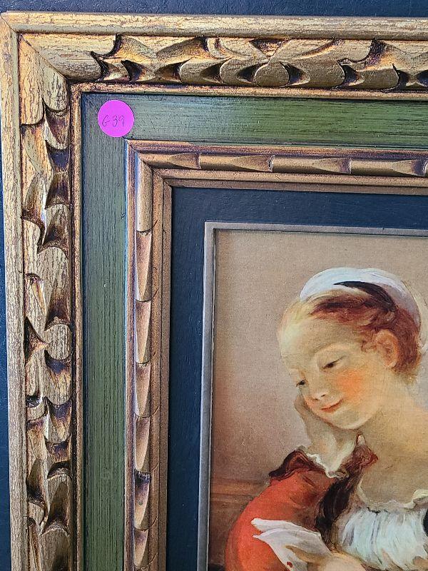 Beautiful carved wood frame with Fragonard print, Le letter.