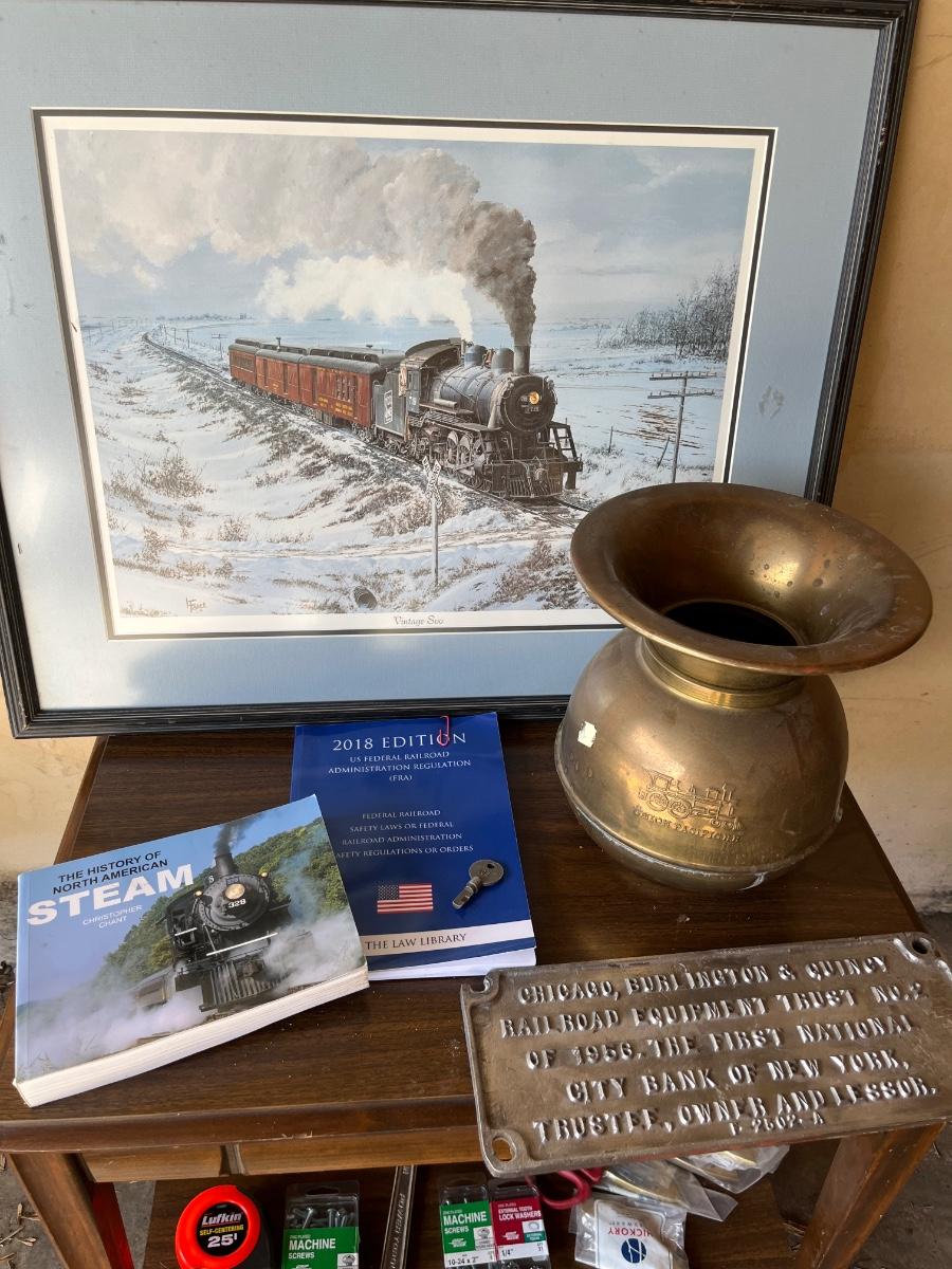 G4- Railroad lot (spittoon, key, plaque, picture, books)