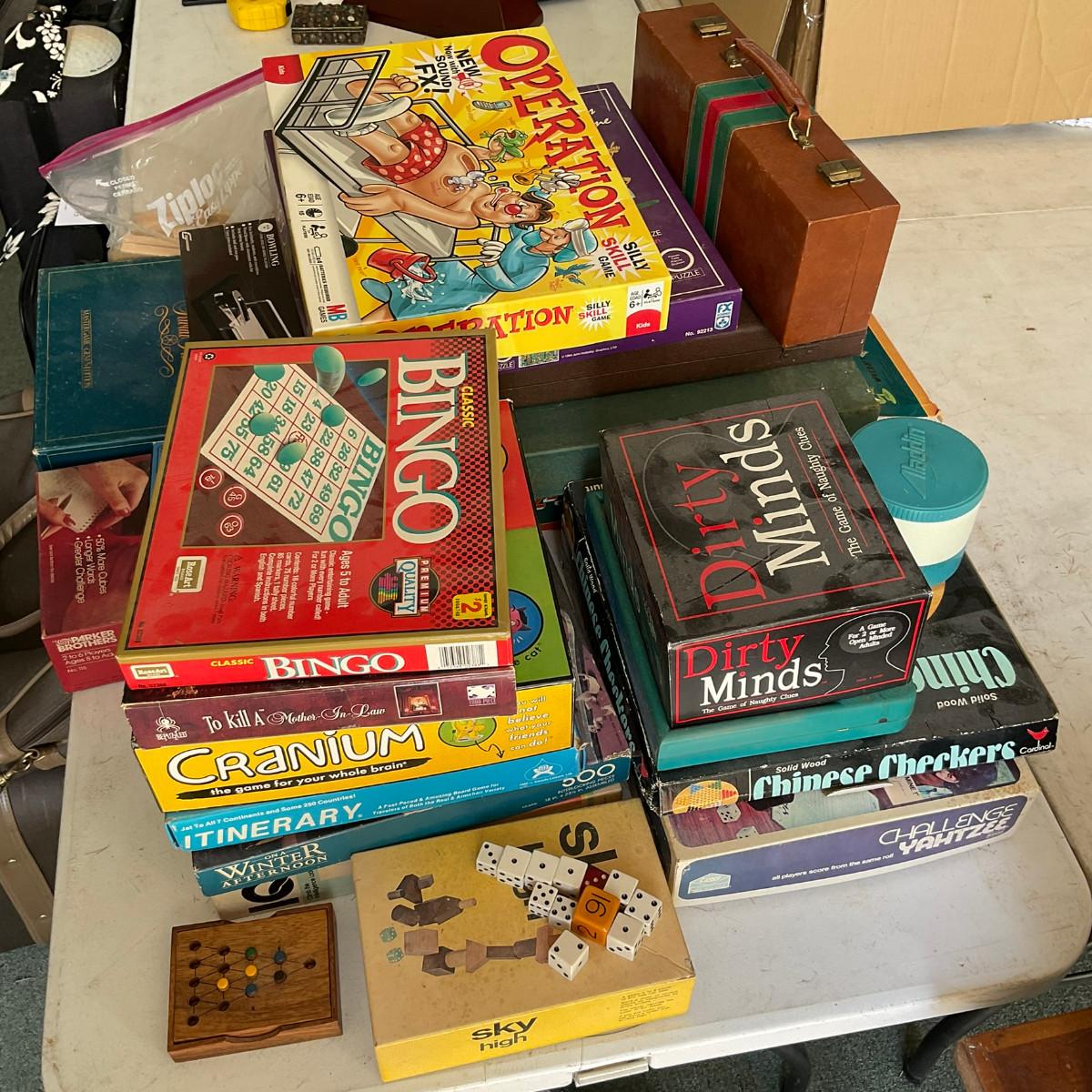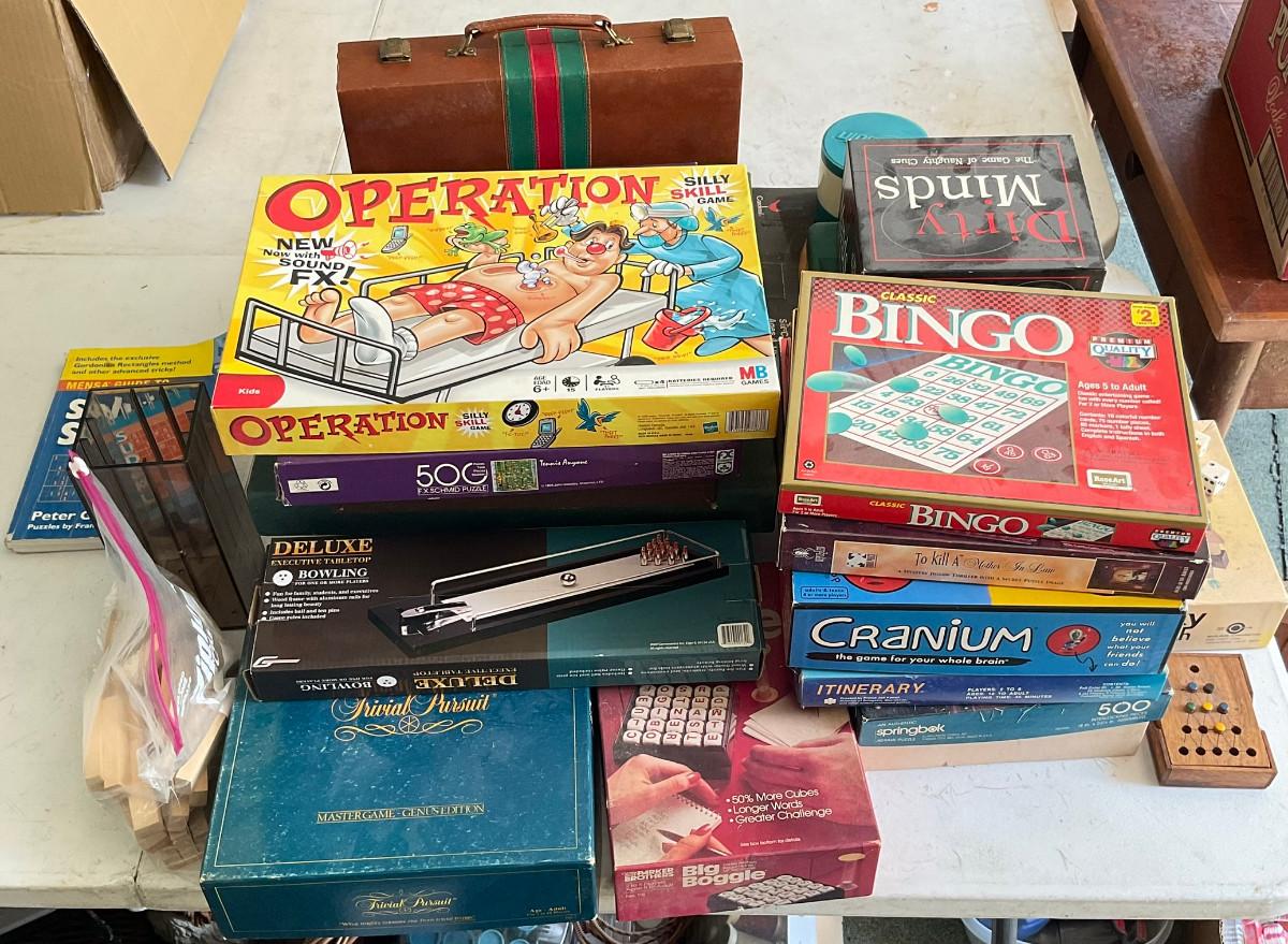 Includes operation, sky high, yahtzee, checkers, bingo, cranium, trivial pursuit, stack attack and more