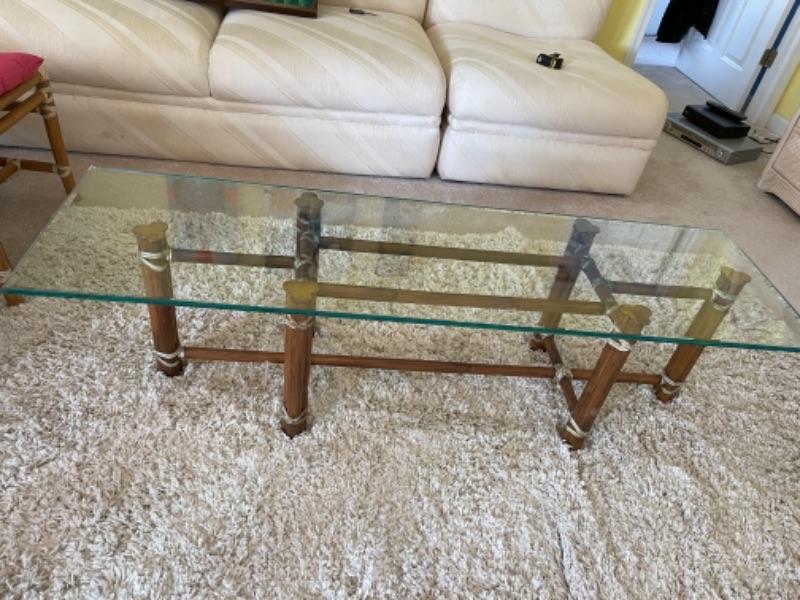 G414 McGuire Beveled Glass Top Bamboo Coffee Table