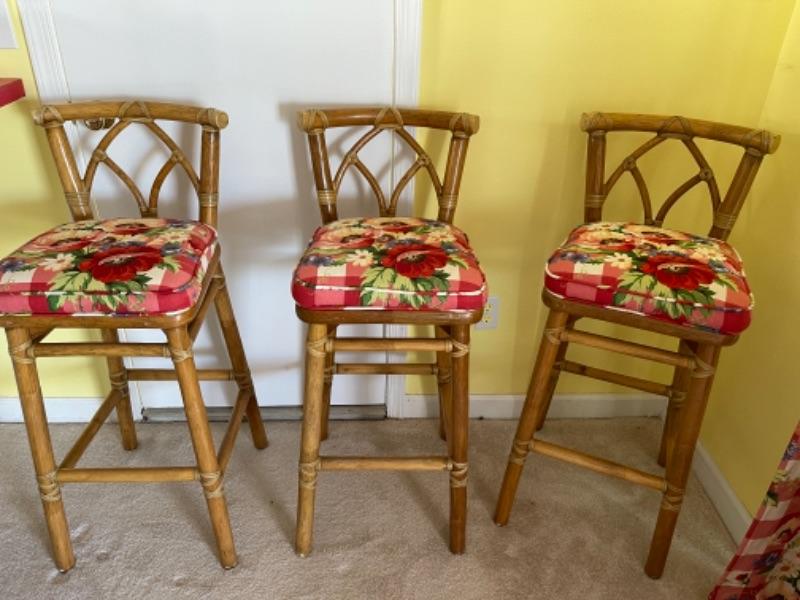G421 Set of 3 Upholstered McGuire Bar Stools