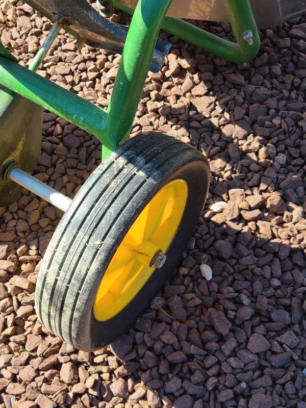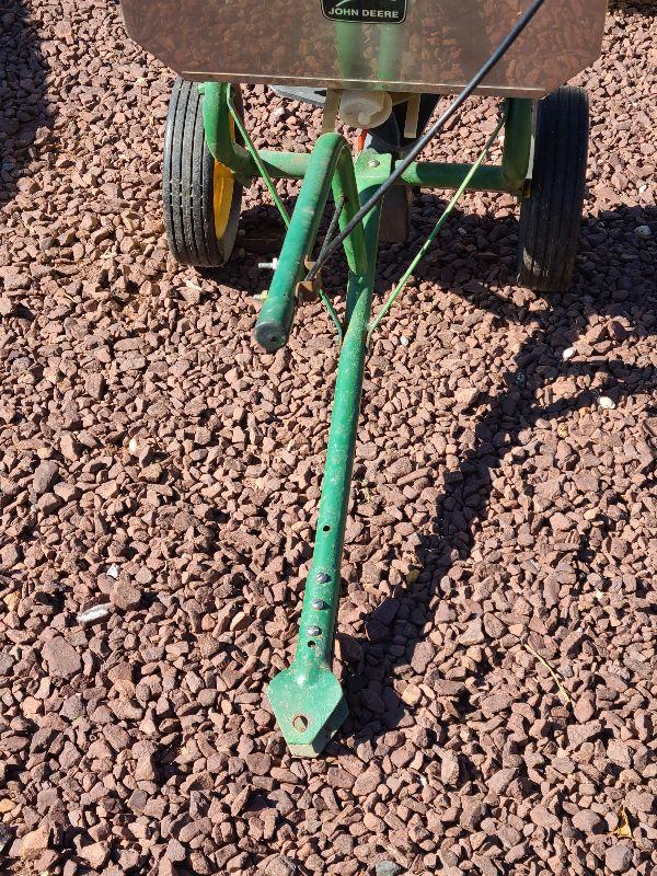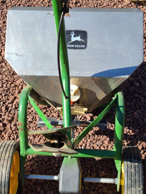 John Deer Seed Spreader. Please see all pictures for contents of the lot, the condition of items in the lot, and measurements of the items if taken. Thank you for looking and have fun bidding.