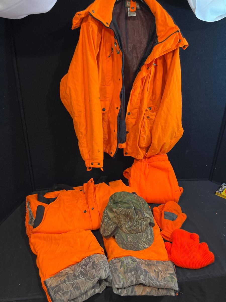 Remington jacket (Lge), reversible bibs (appear to be Large), Arctic Pole XL sweatpants, hats gloves/mittens