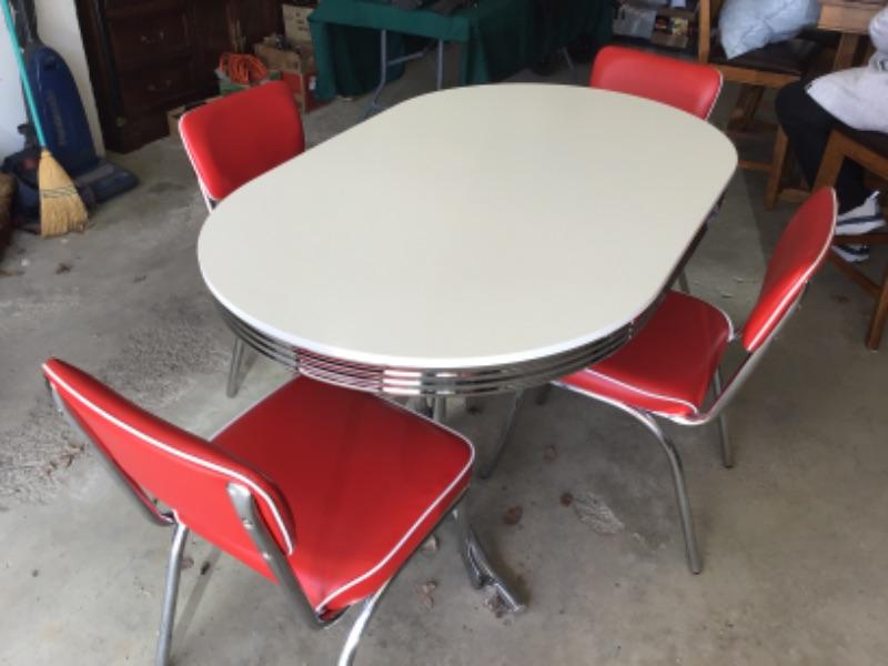 absolutely beautiful reproduction table and chair set. Basically in like new condition. Has one scratch as shown in pictures. measures 3“˜ x 5“˜.