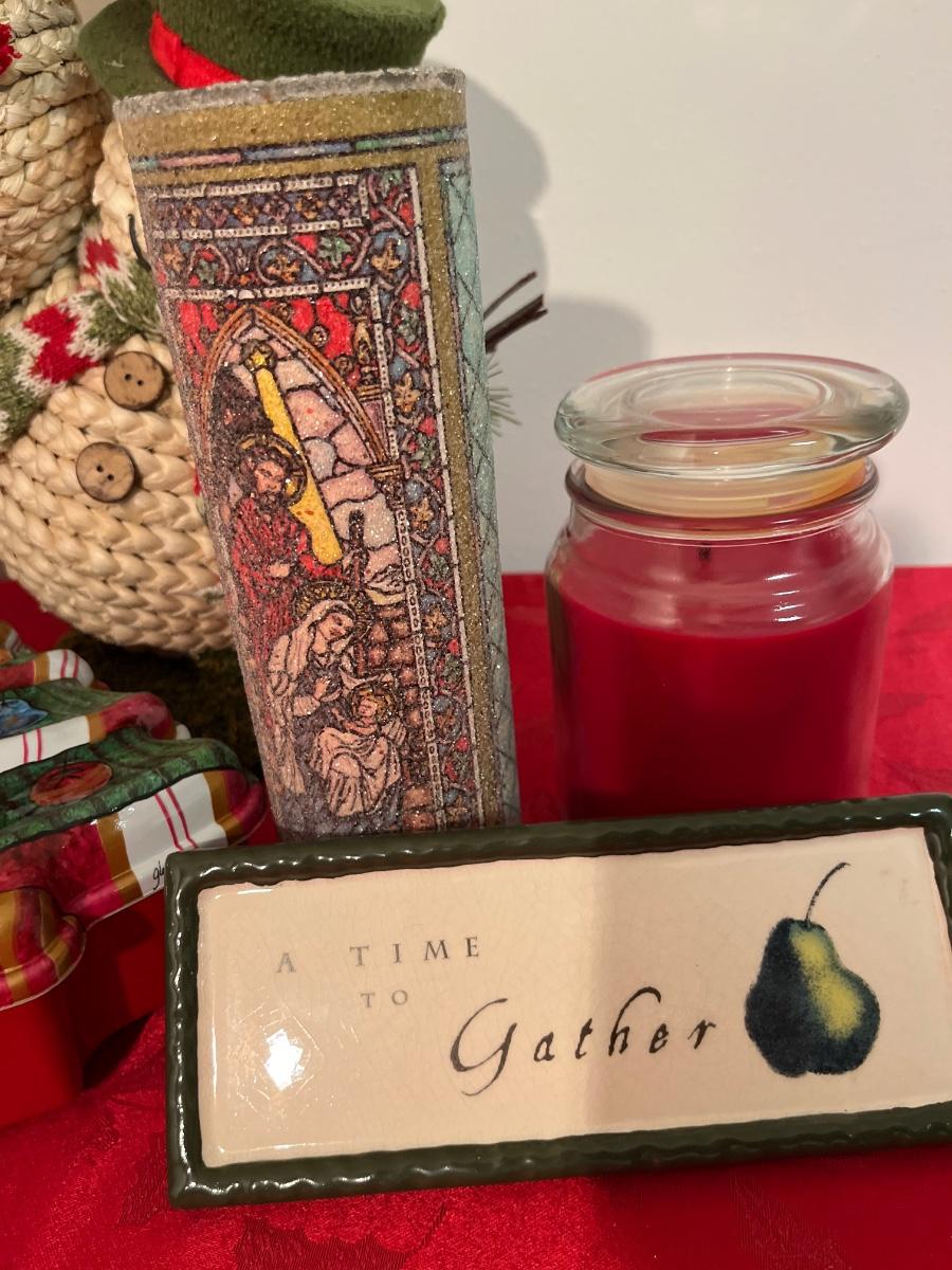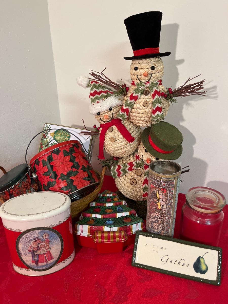 G46- Straw Snowman, tins, candles