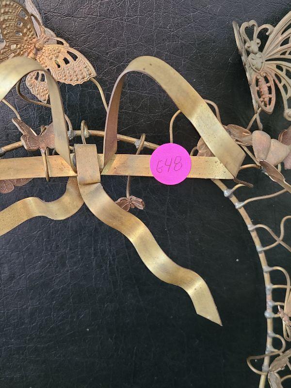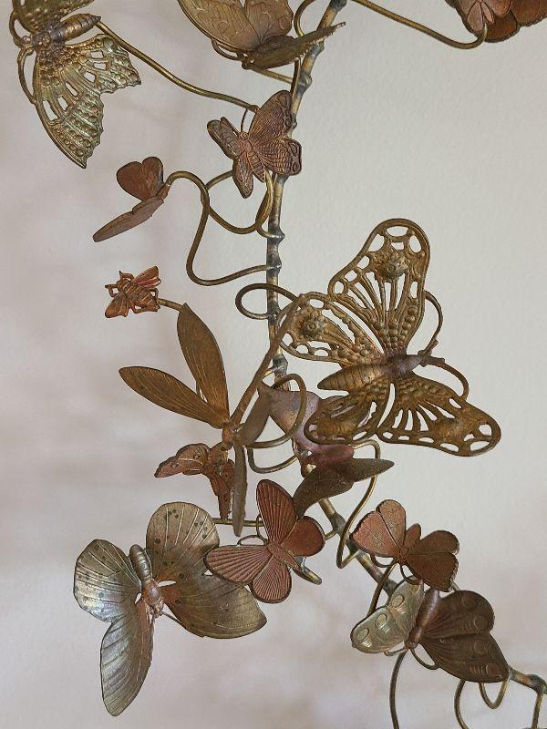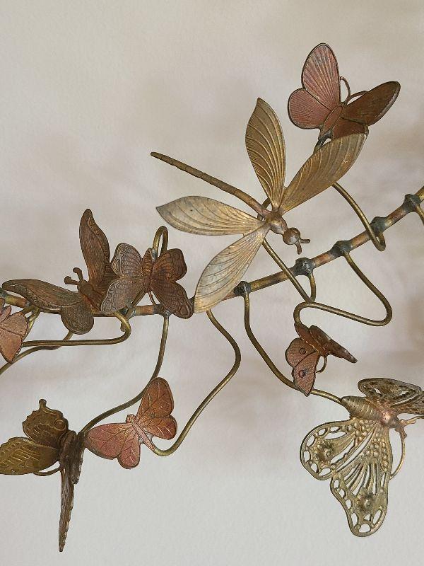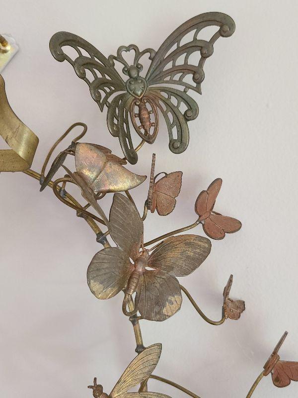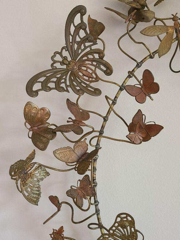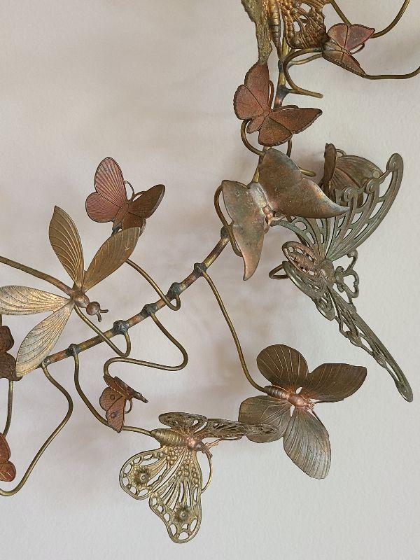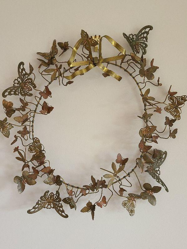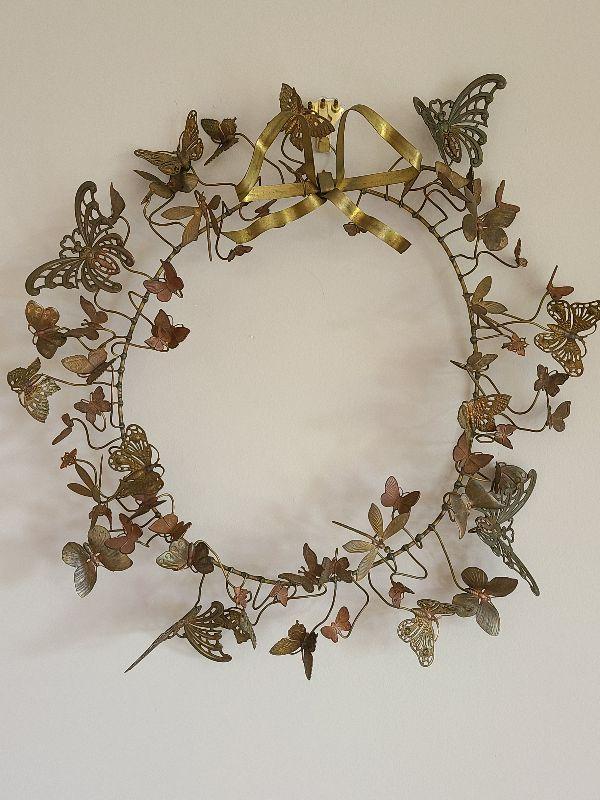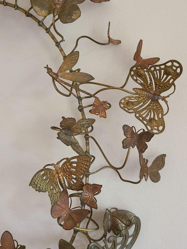 Stunning mixed metal butterfly wreath with dragonflies and bees. Copper, brass, and other metals. Please see all pictures for exact contents of the lot, condition of the items, and if measurements if taken. Thank you for looking and have fun bidding.