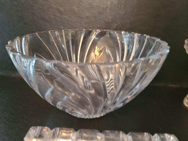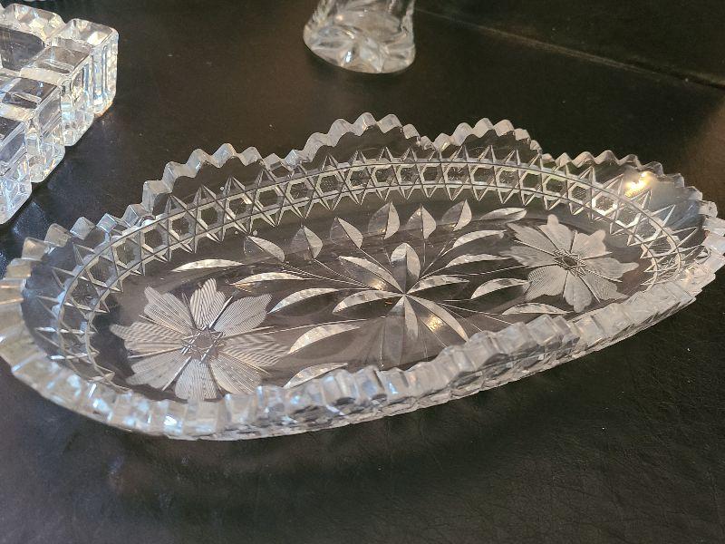 Oval dish has flea bite chips around edges. Items are heavy and in great condition. Please see all pictures for exact contents of the lot, condition of the items, and if measurements if taken. Thank you for looking and have fun bidding.