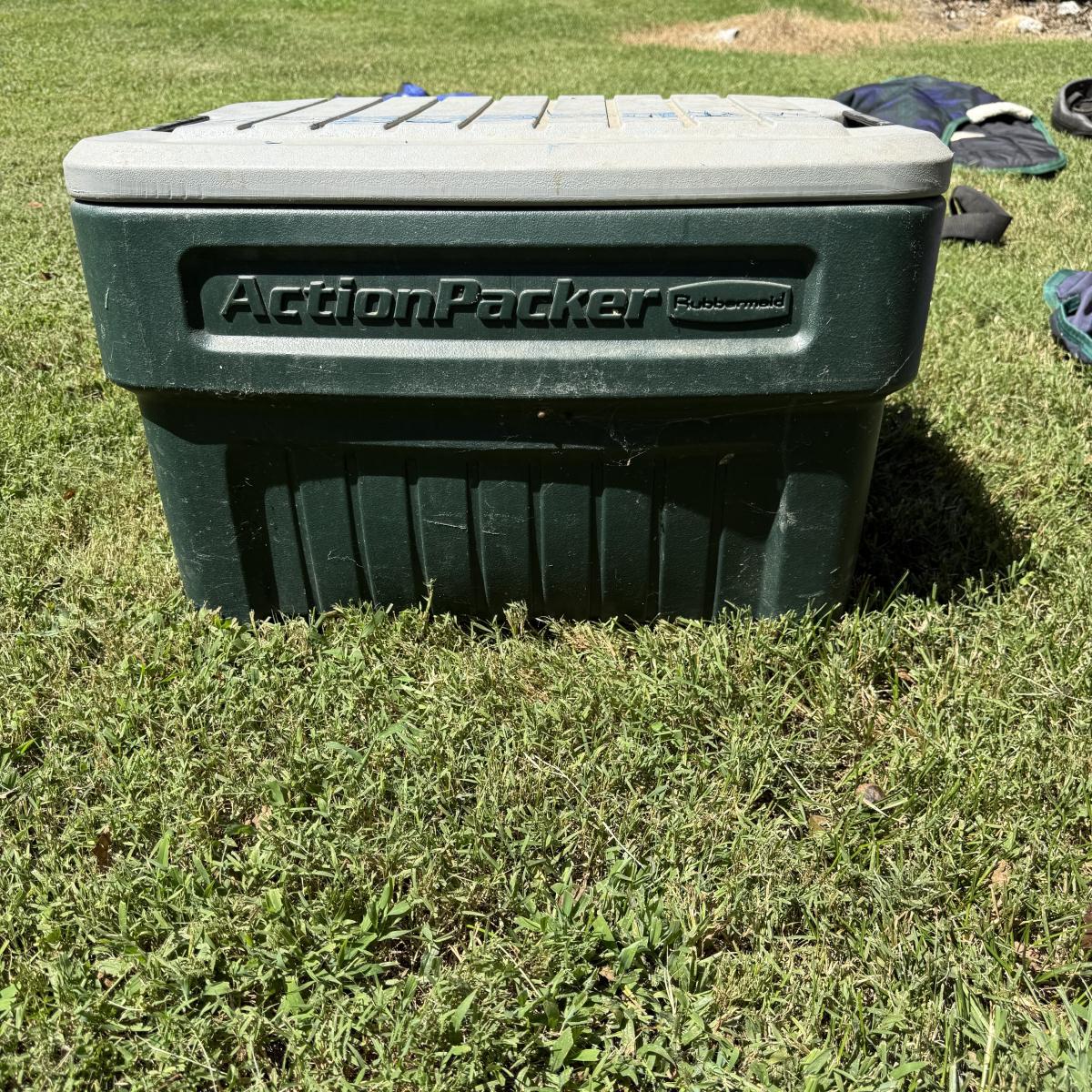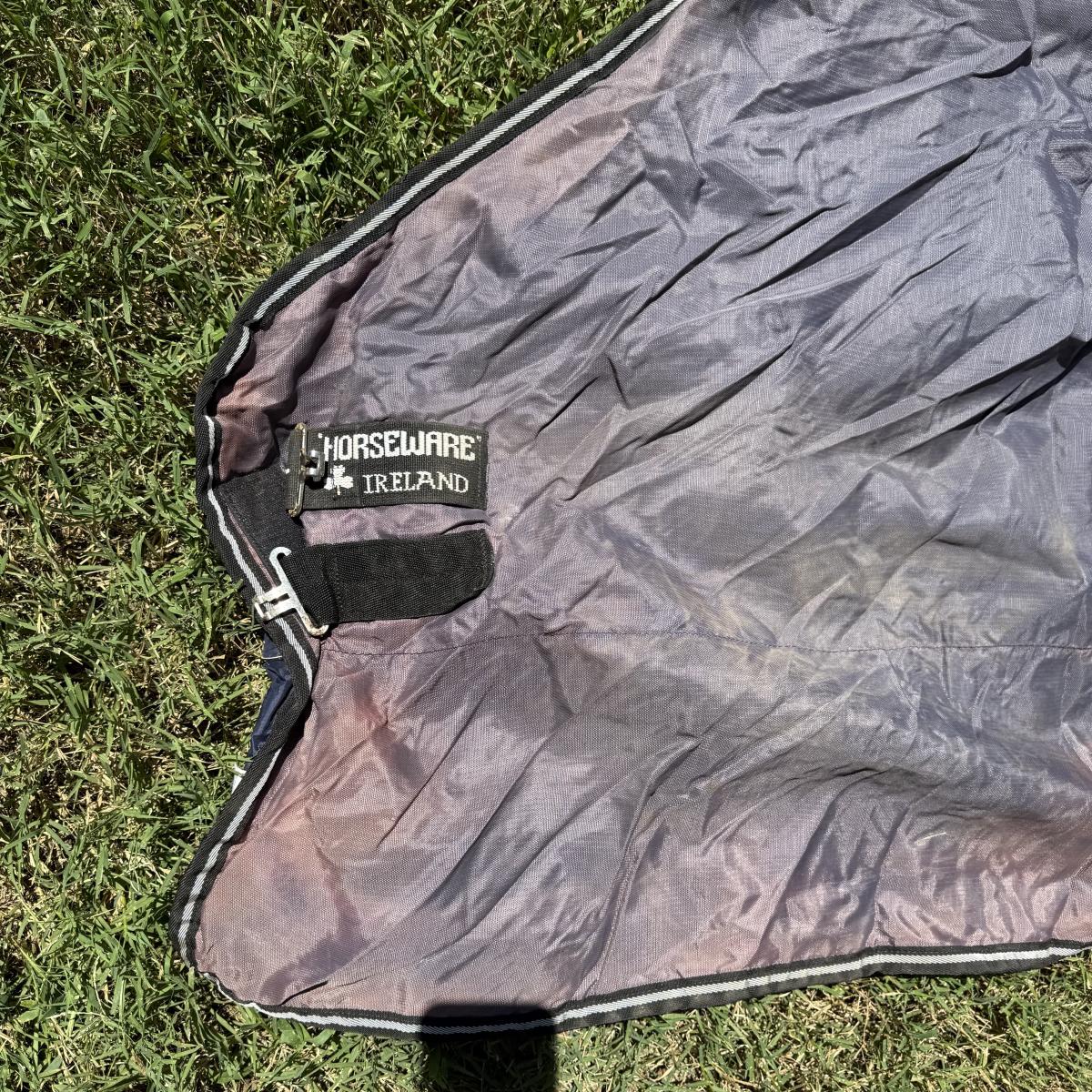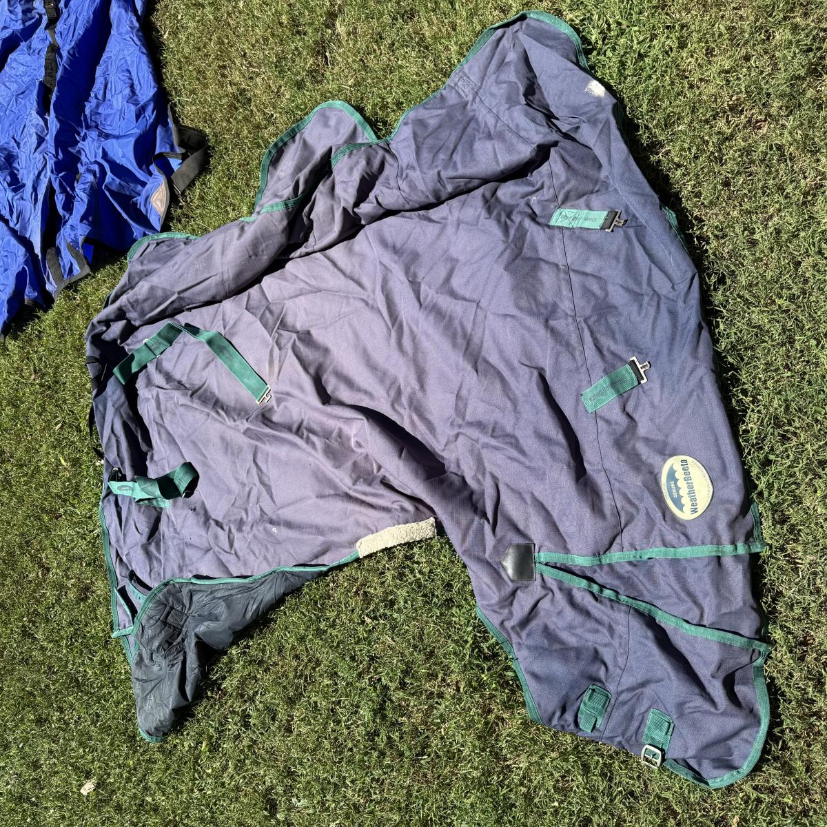Comes with Weather beeta blankets and other various horse blankets. Comes with one horse rider helmet also comes with action packer Rubbermaid container.