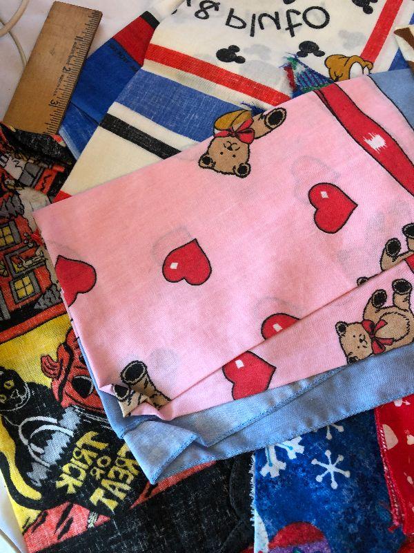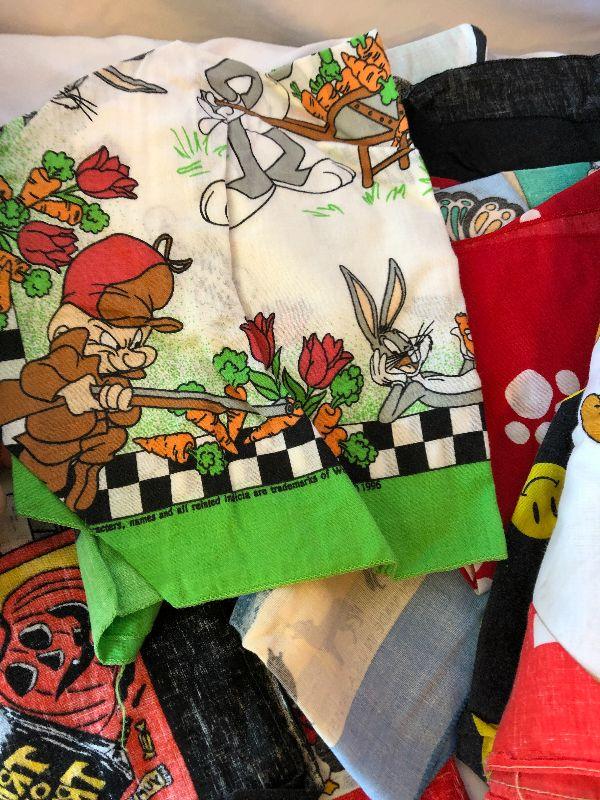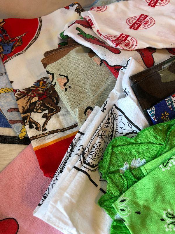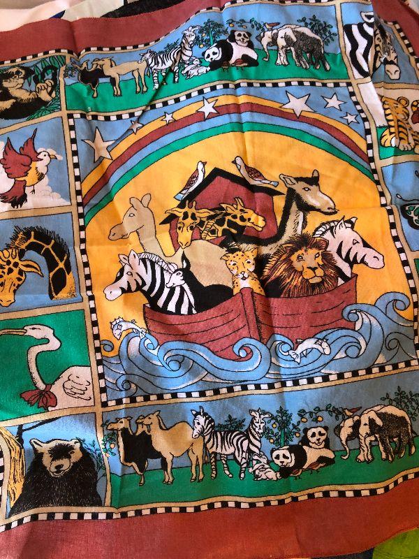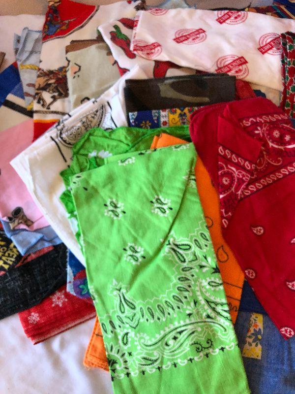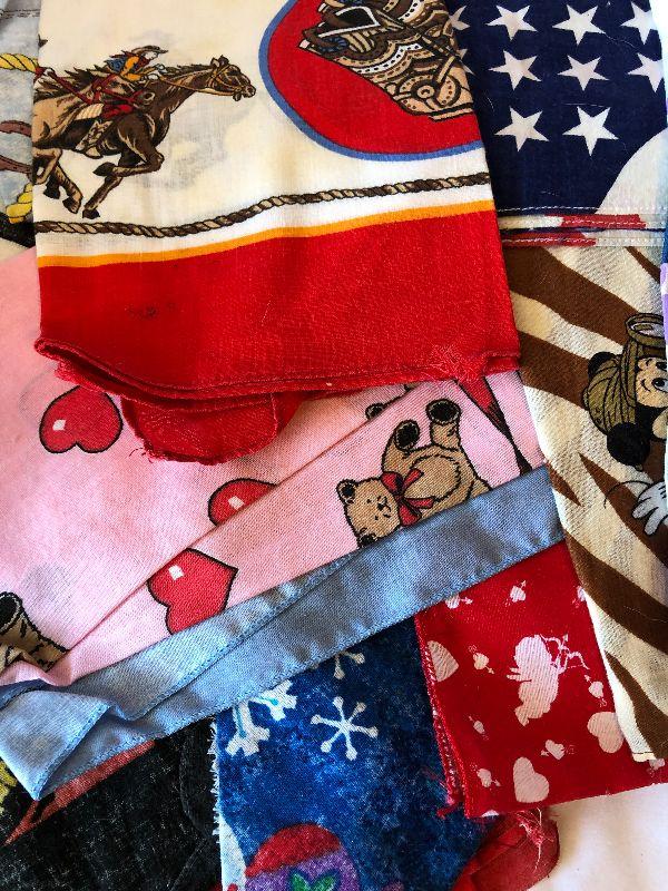 lot of scarves were used for loved dog, Needs washing. unique patterns and charactors