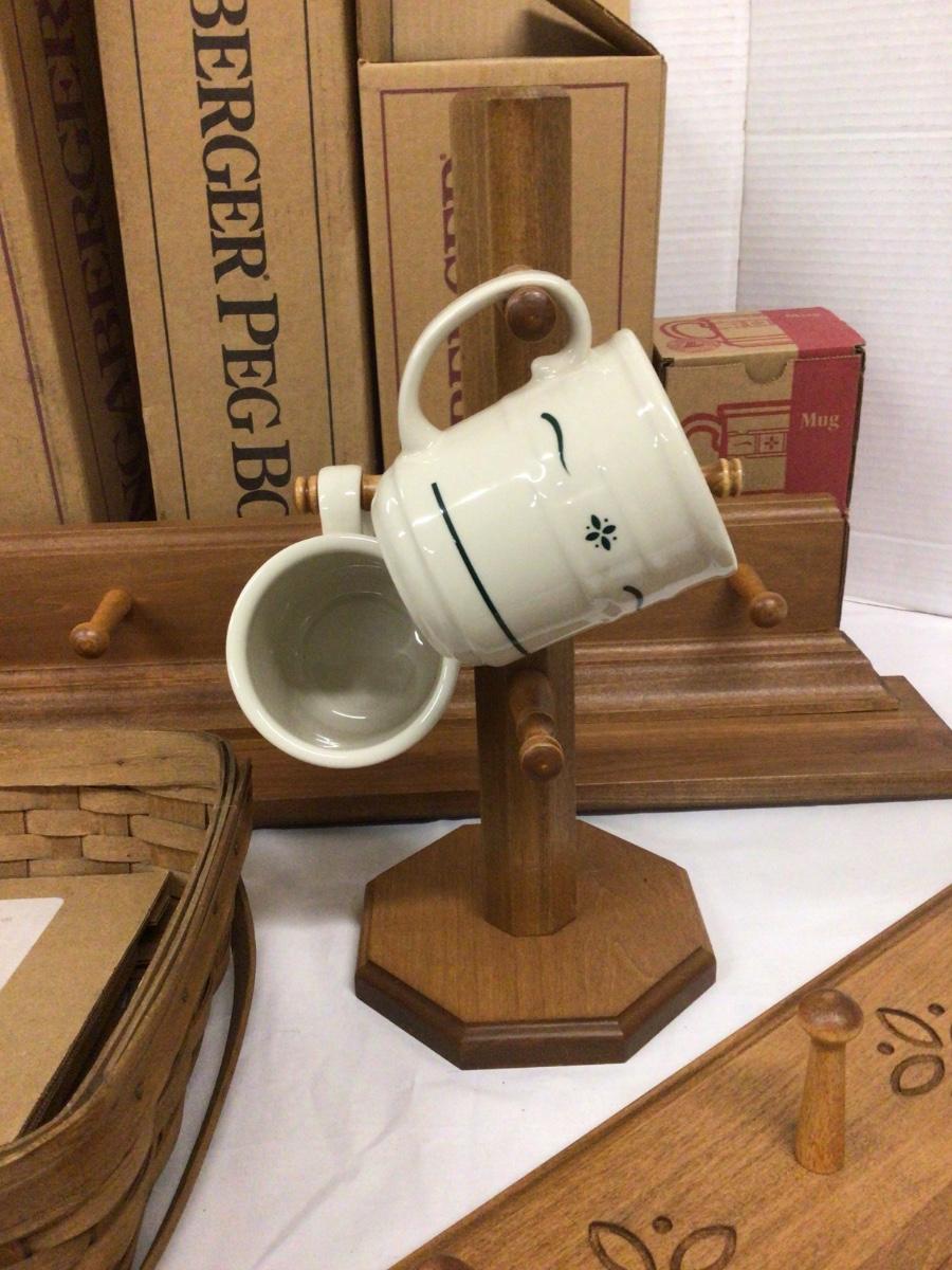 All new in still in box. Mug tree, 2 coffee mugs, 2 wall hangers, gingerbread kit, and basket.