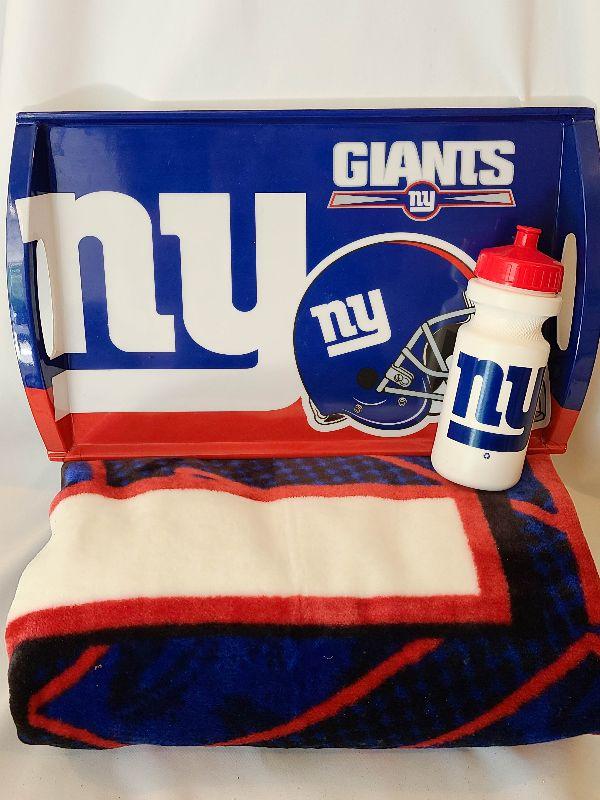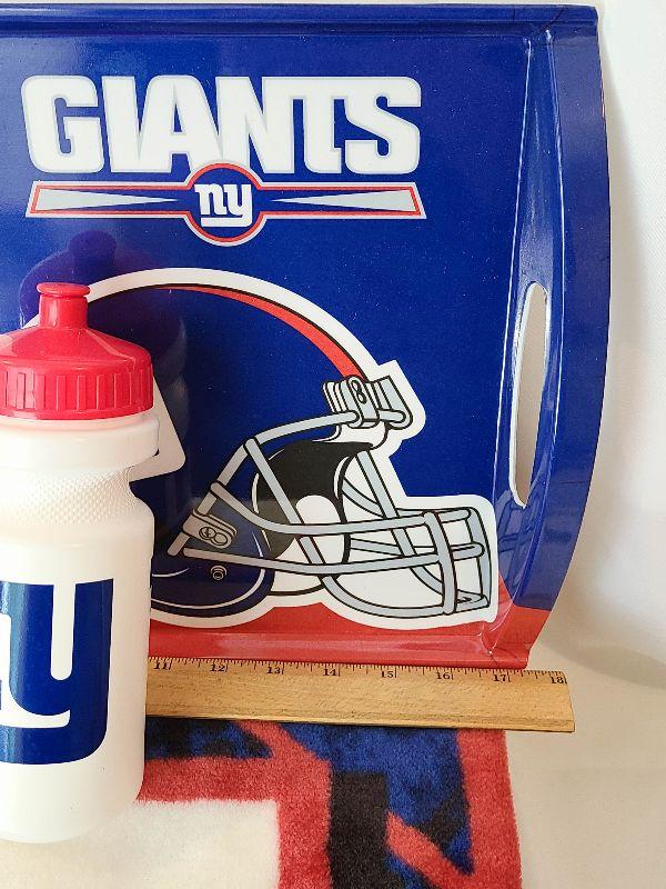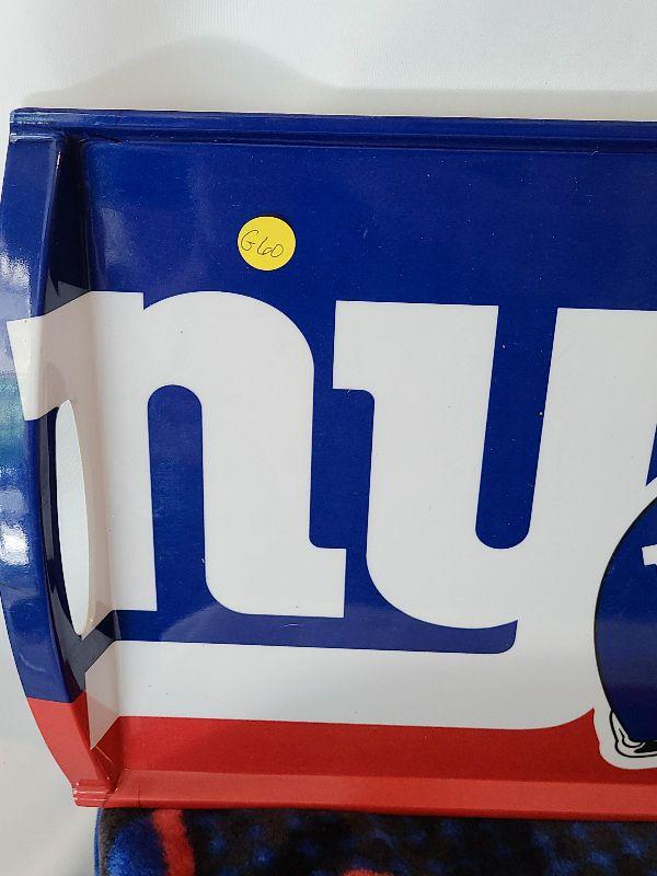 Fun lot for the fan! Thick plush blanket that could use a wash, new sports bottle and plastic serving tray!