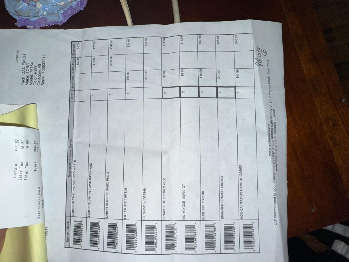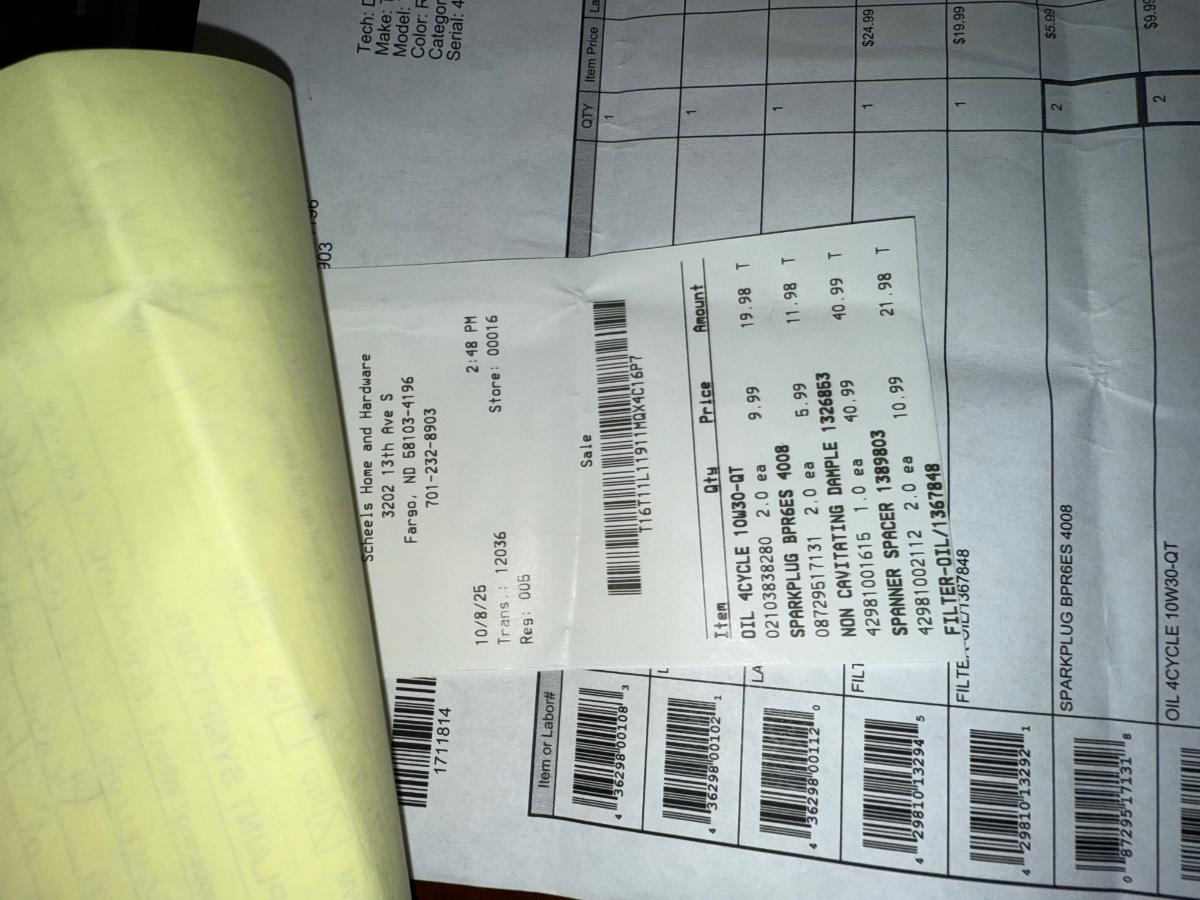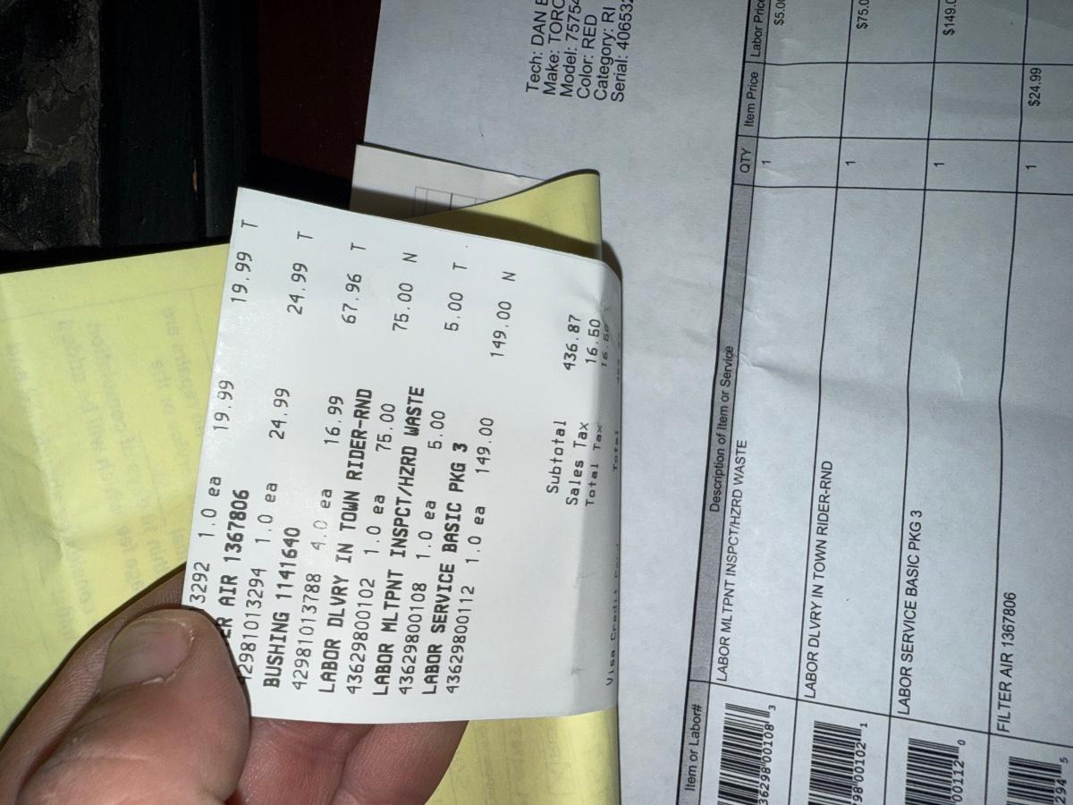 Toro zero turn riding mower, was just taken to Scheels to have a once over. Receive for work done in photos!