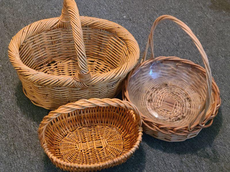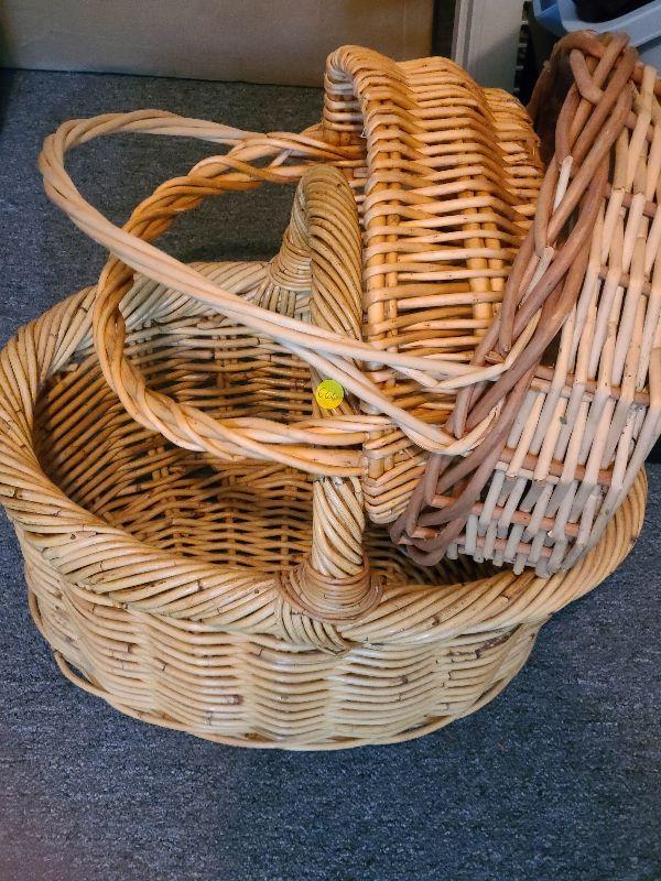 Nice lot of large baskets! These are sturdy and the largest would be perfect for pet supplies, or yarns! Please see pictures for content/condition of the lot. Good luck and happy bidding.