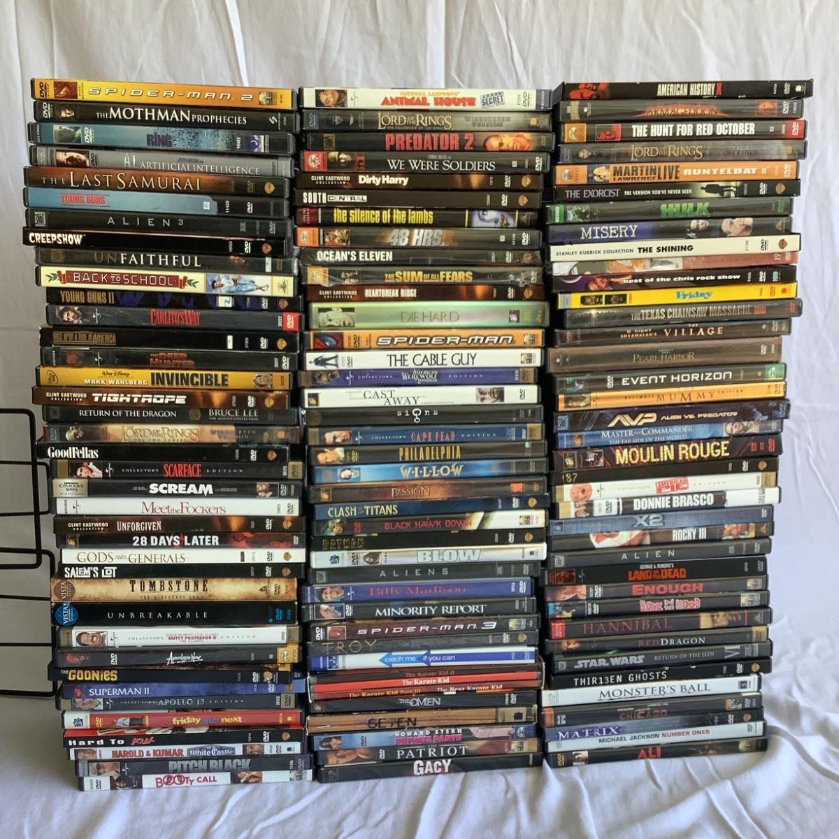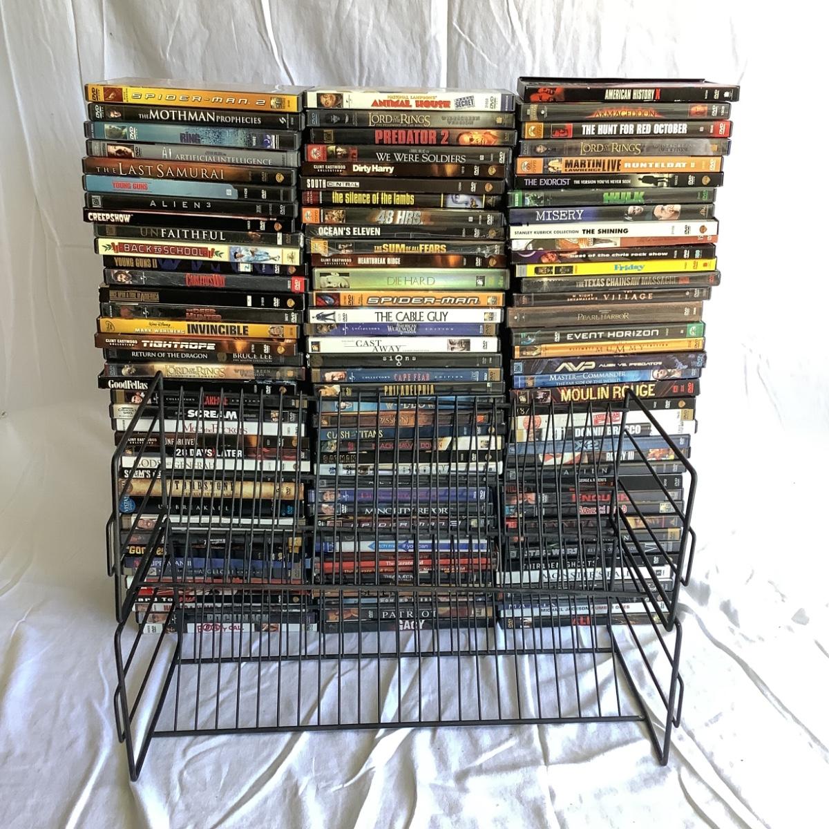 G8098 DVD Lot with 2 Metal DVD Racks