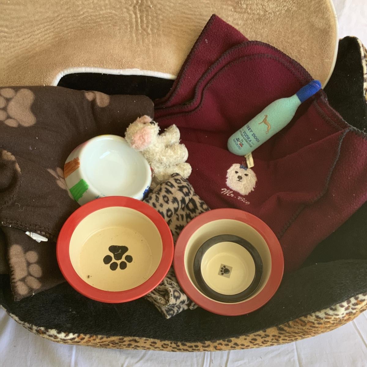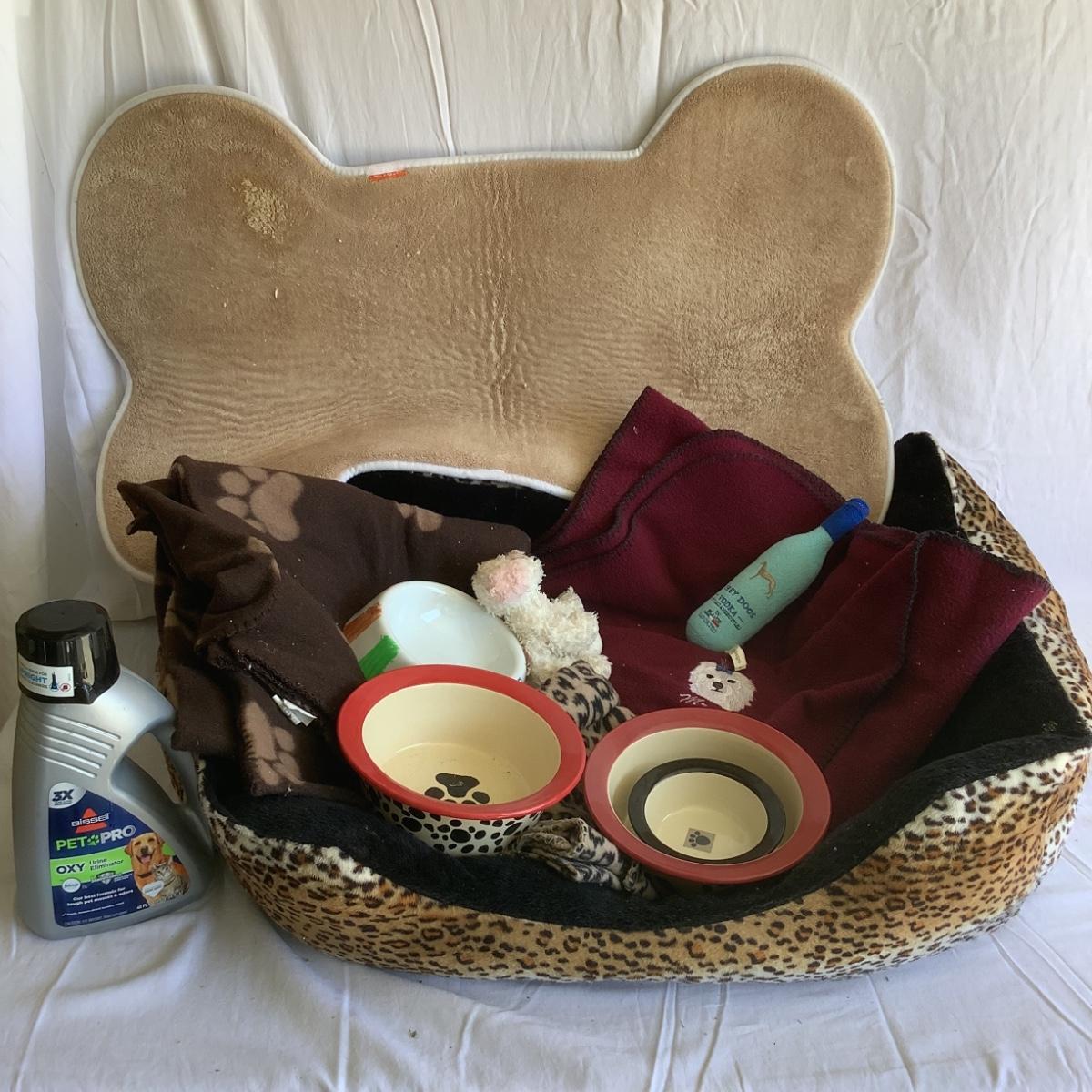dog bed blanket, food mat, toys and more