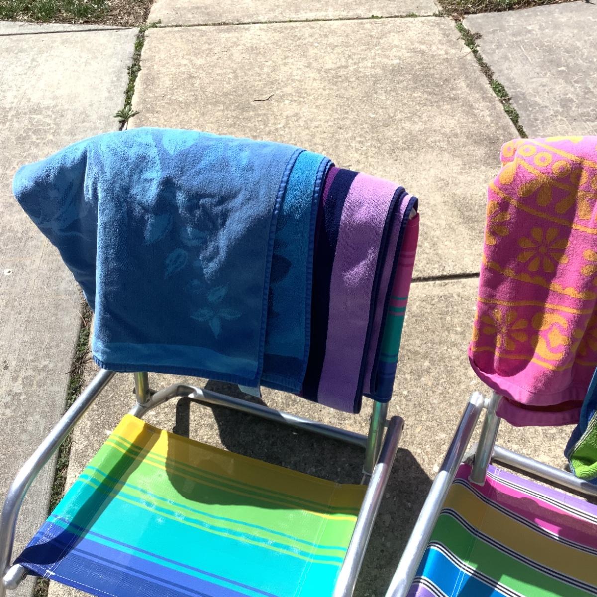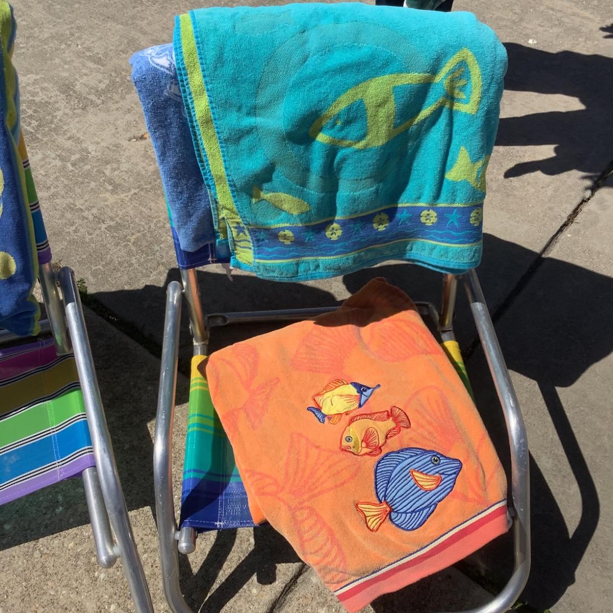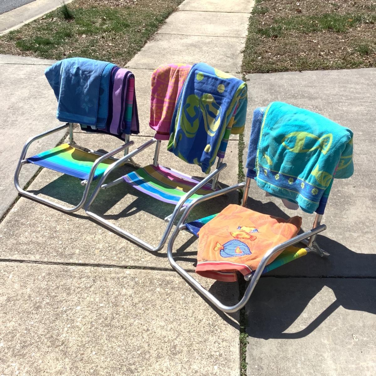 G8126 Lot of Three Beach Chairs and Three Beach Towels
