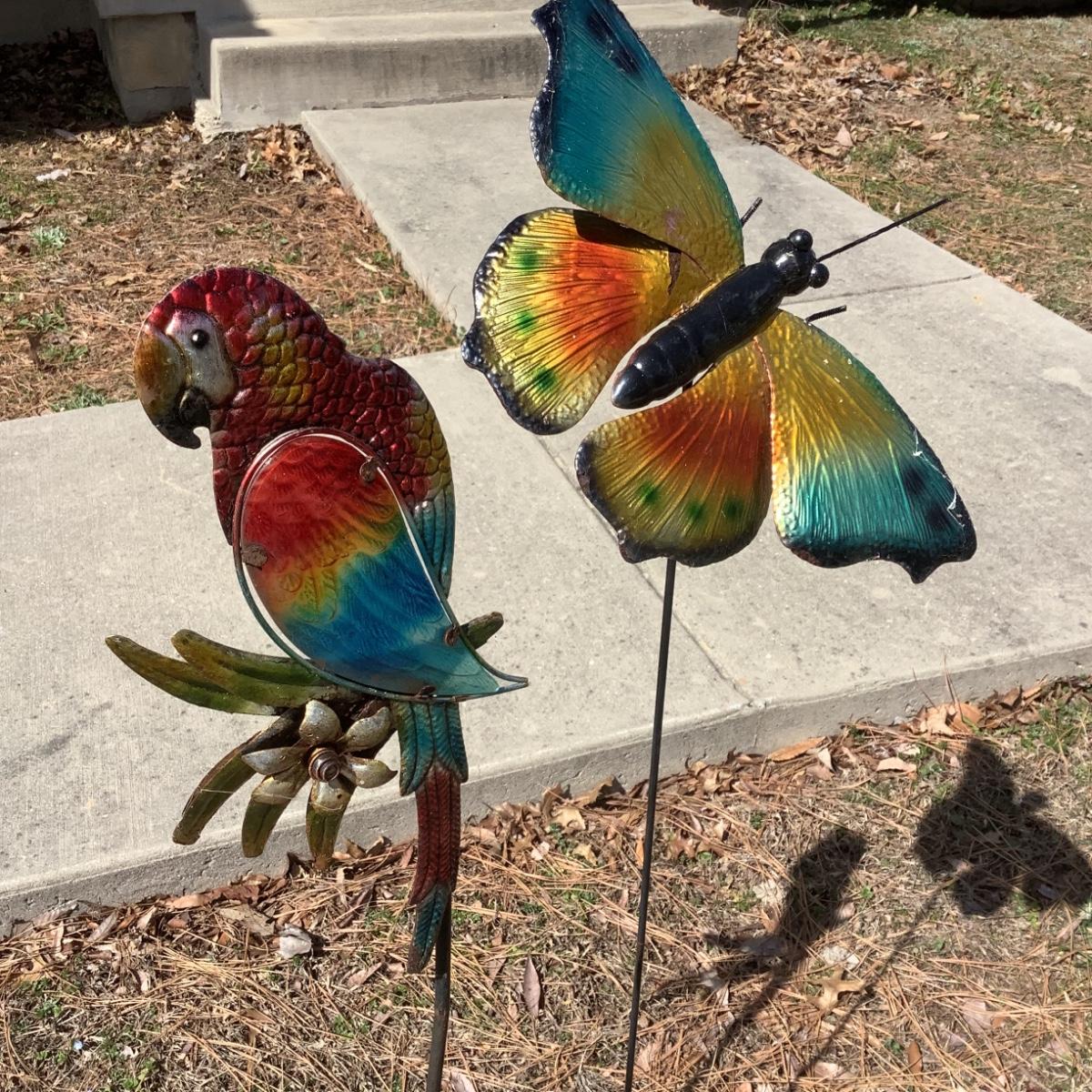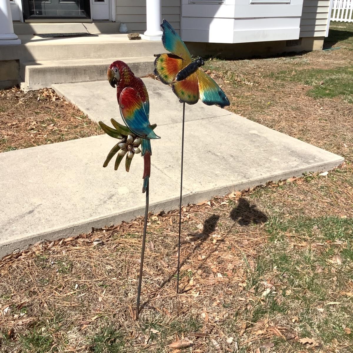 G8132 Lot of Parrot and Butterfly Metal Yard Garden Ornaments