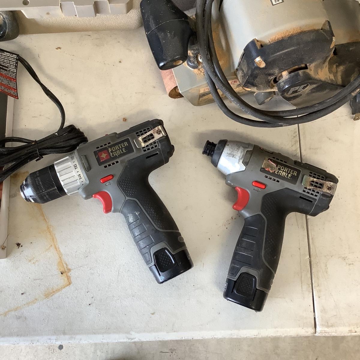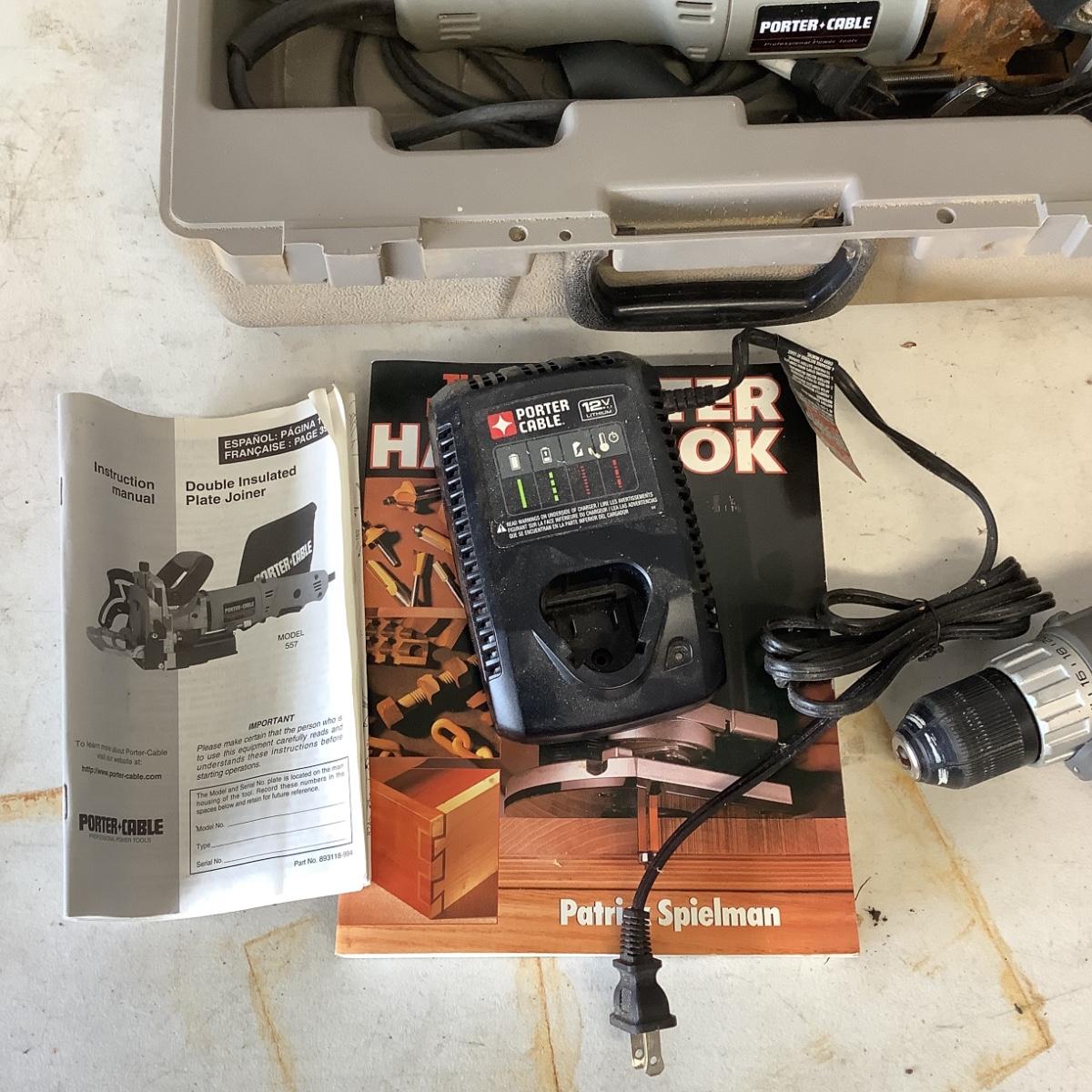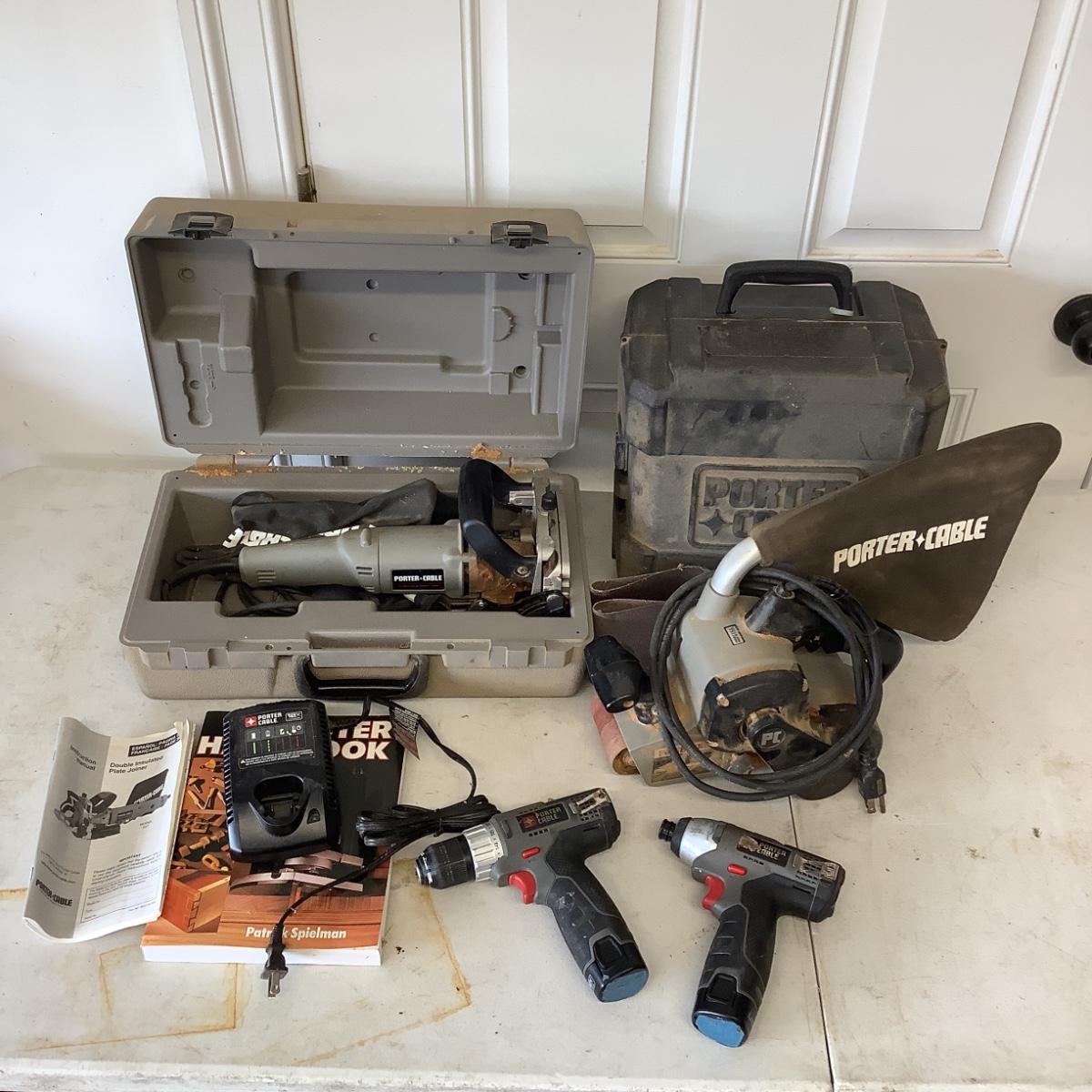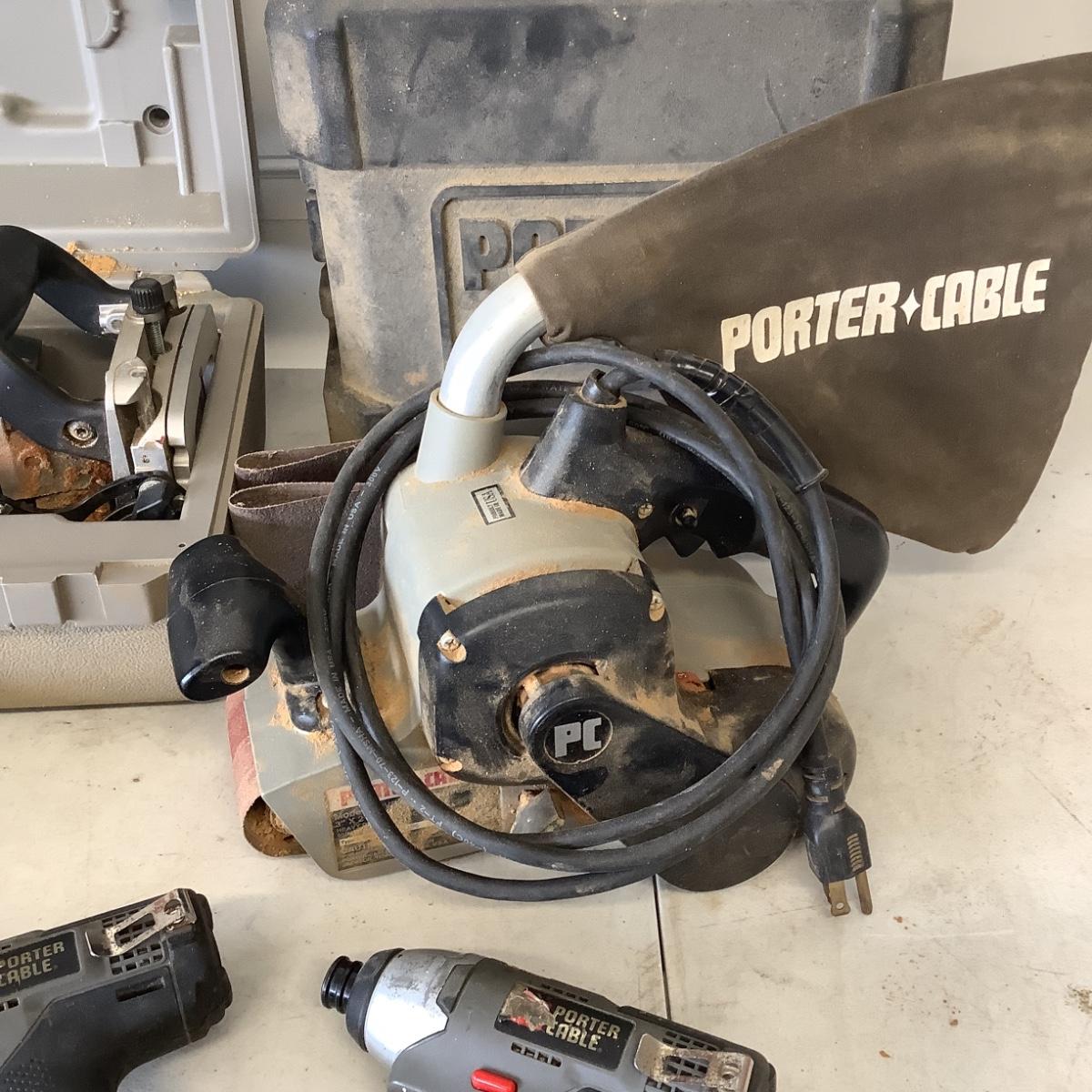 G874 Porter Cable Tool Lot , Belt Sander,Plate Jointer, Drill 2 Lithium Batteries
