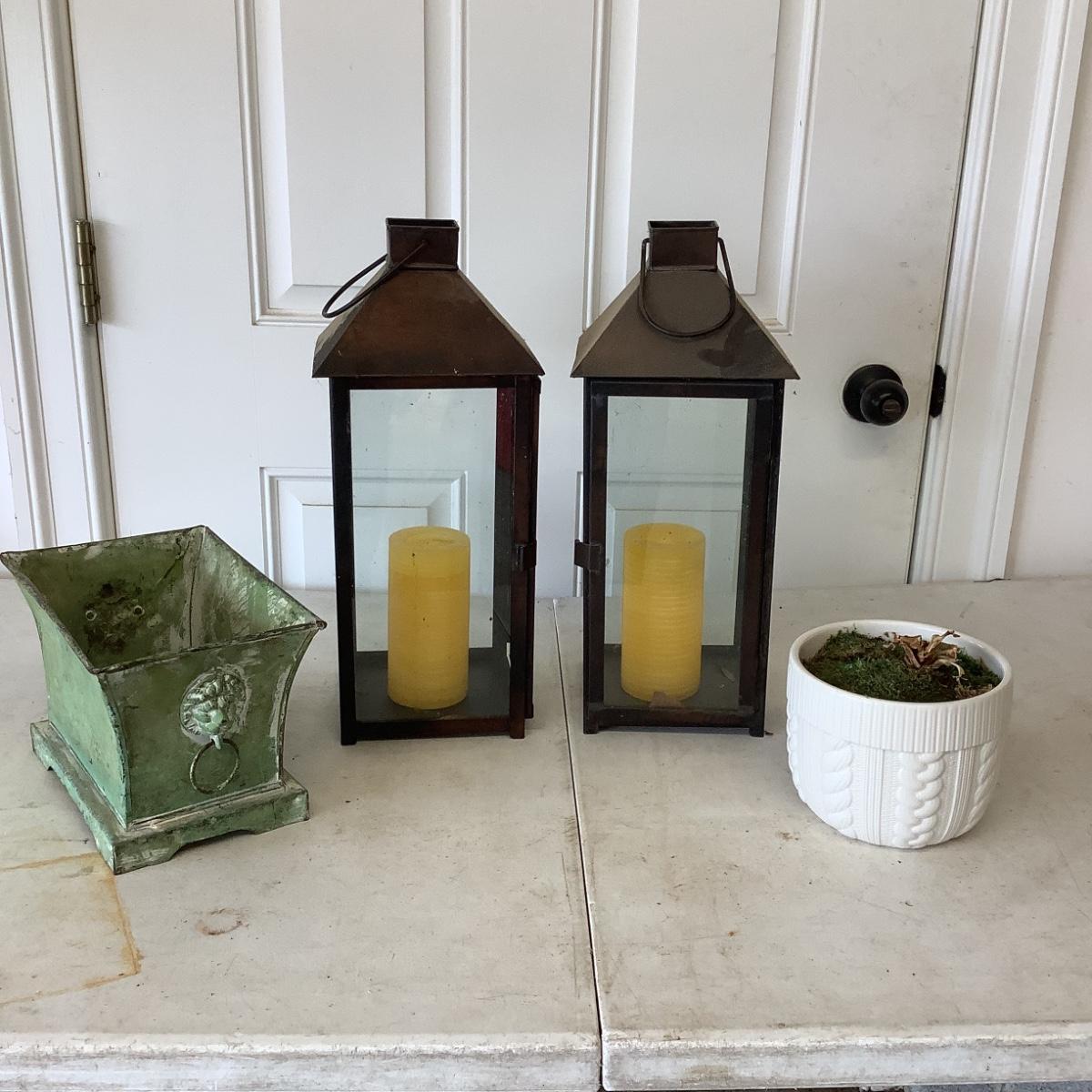 G895 Lot of Outdoor Lanterns and Flower Pots